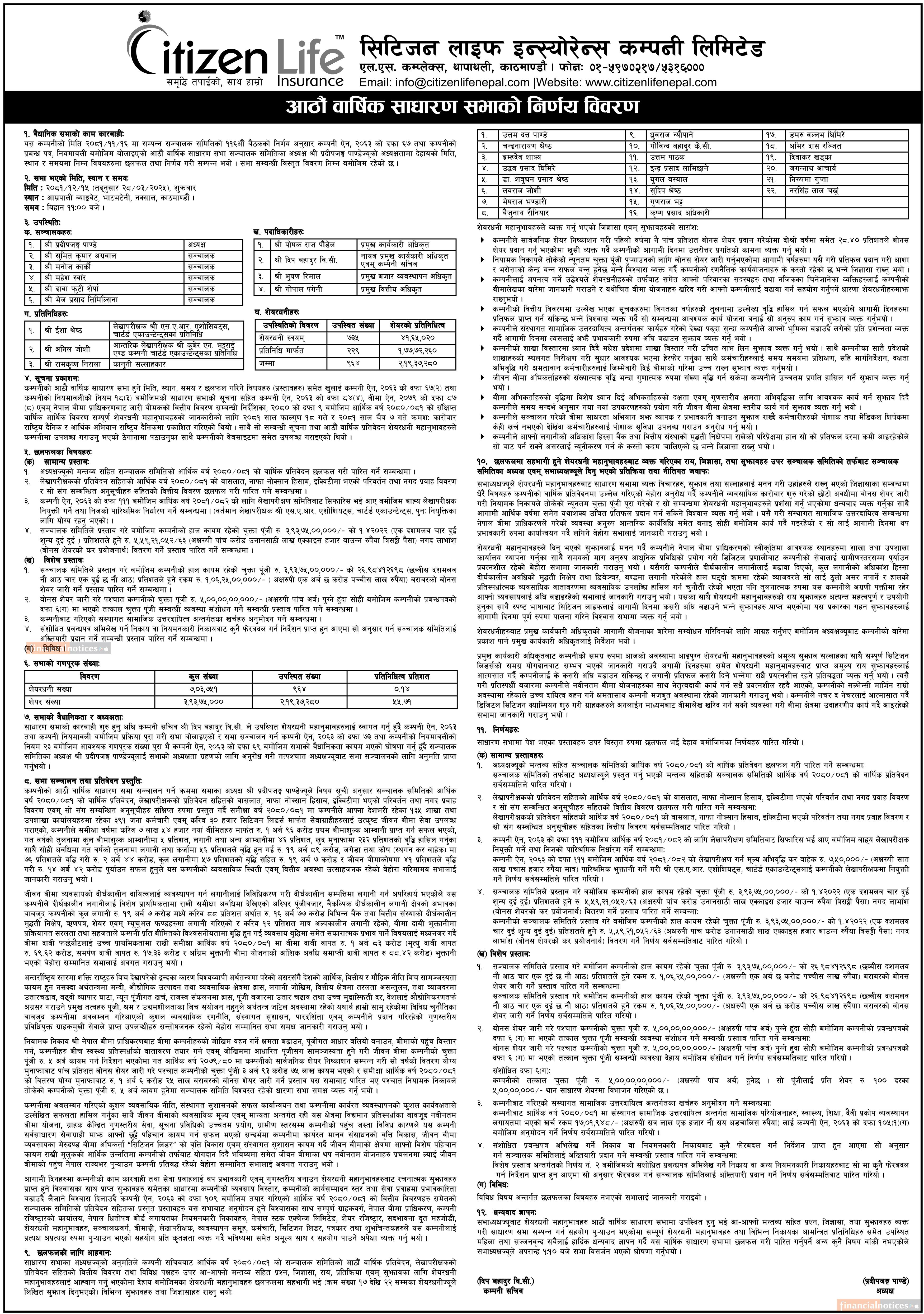 Citizen Life Insurance Company Limited has published the minutes of its 8th AGM