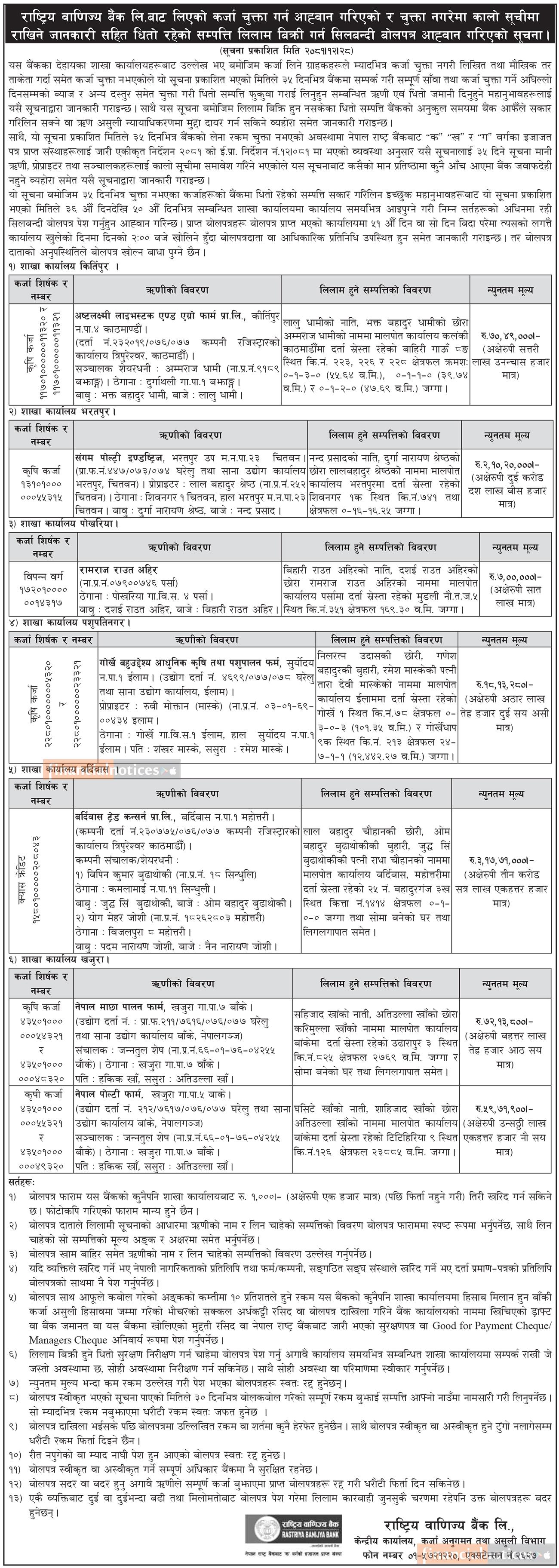 कर्जा चुक्ता गर्ने तथा कालो सूचीमा राखिने सहित धितो रहेको सम्पत्ति लिलाम बिक्रीको सूचना