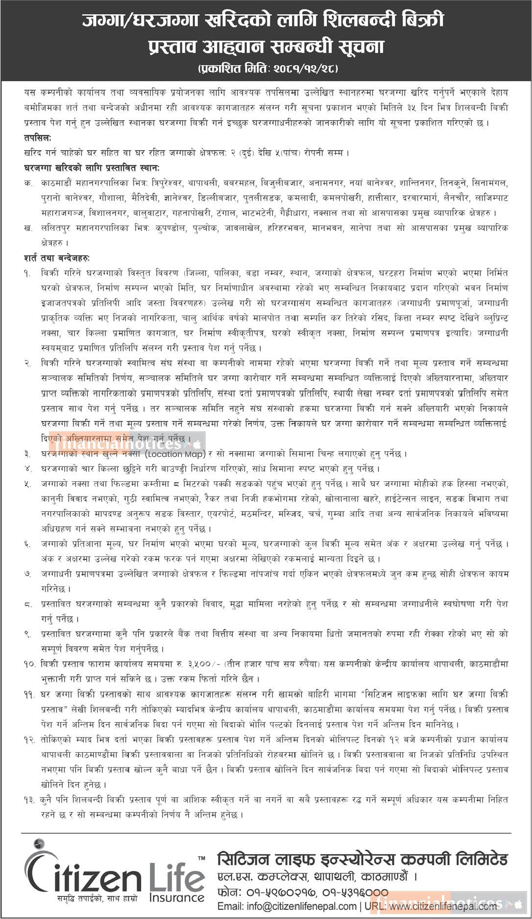 घरजग्गा खरिदको लागि शिलबन्दी बिक्री प्रस्ताव आव्हानको सूचना