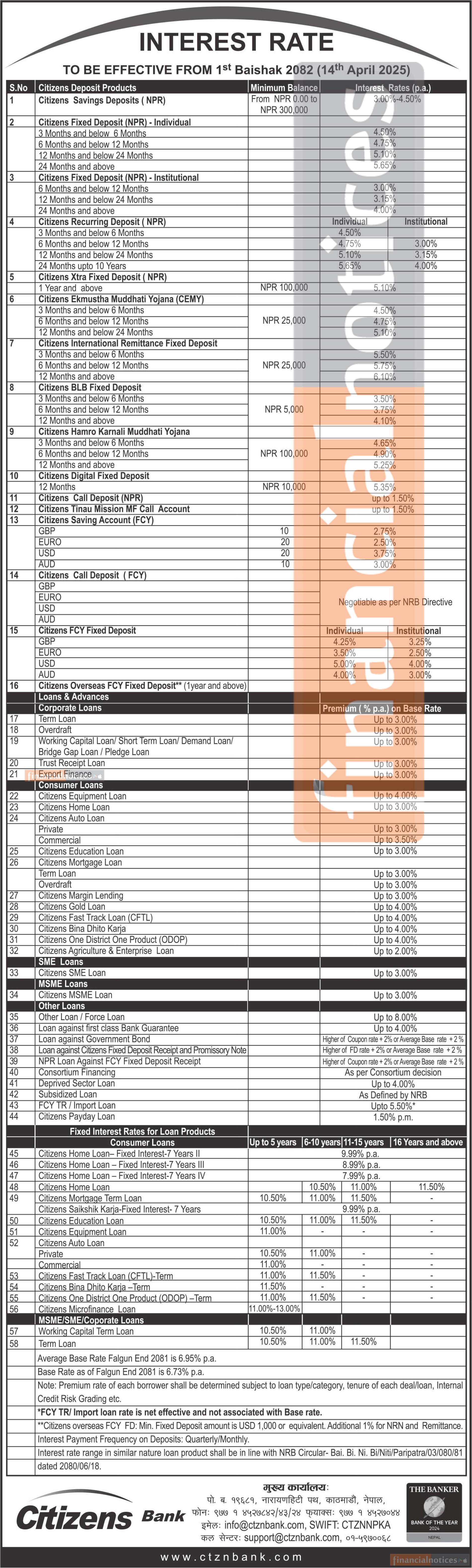 नयाँ वर्षबाट लागु हुने गरी सिटिजन्स बैंकको नयाँ ब्याजदर सार्वजनिक, जानौ कुन खातामा कति ?