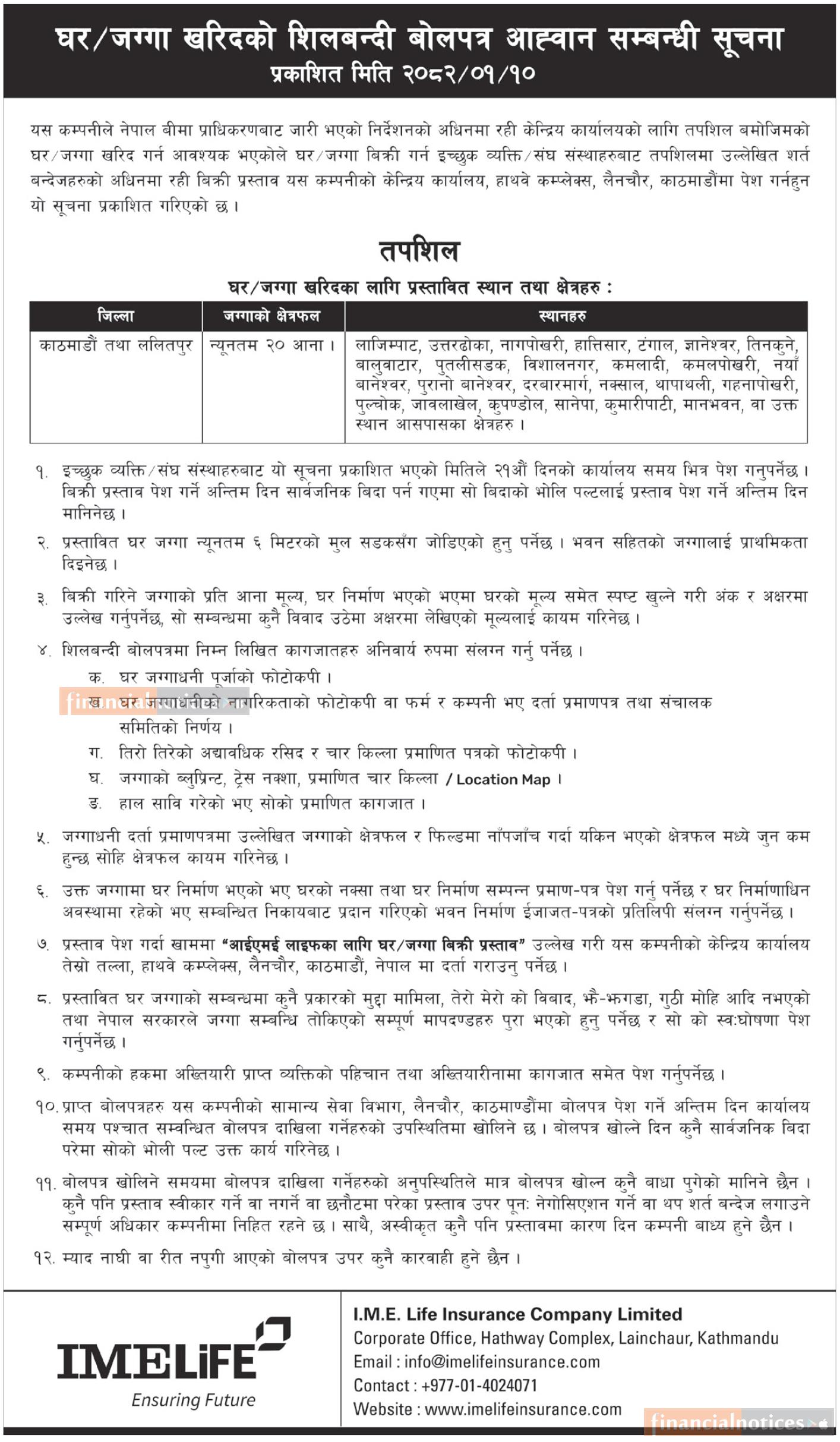 घरजग्गा खरिदको लागि शिलबन्दी बोलपत्र आव्हानको सूचना