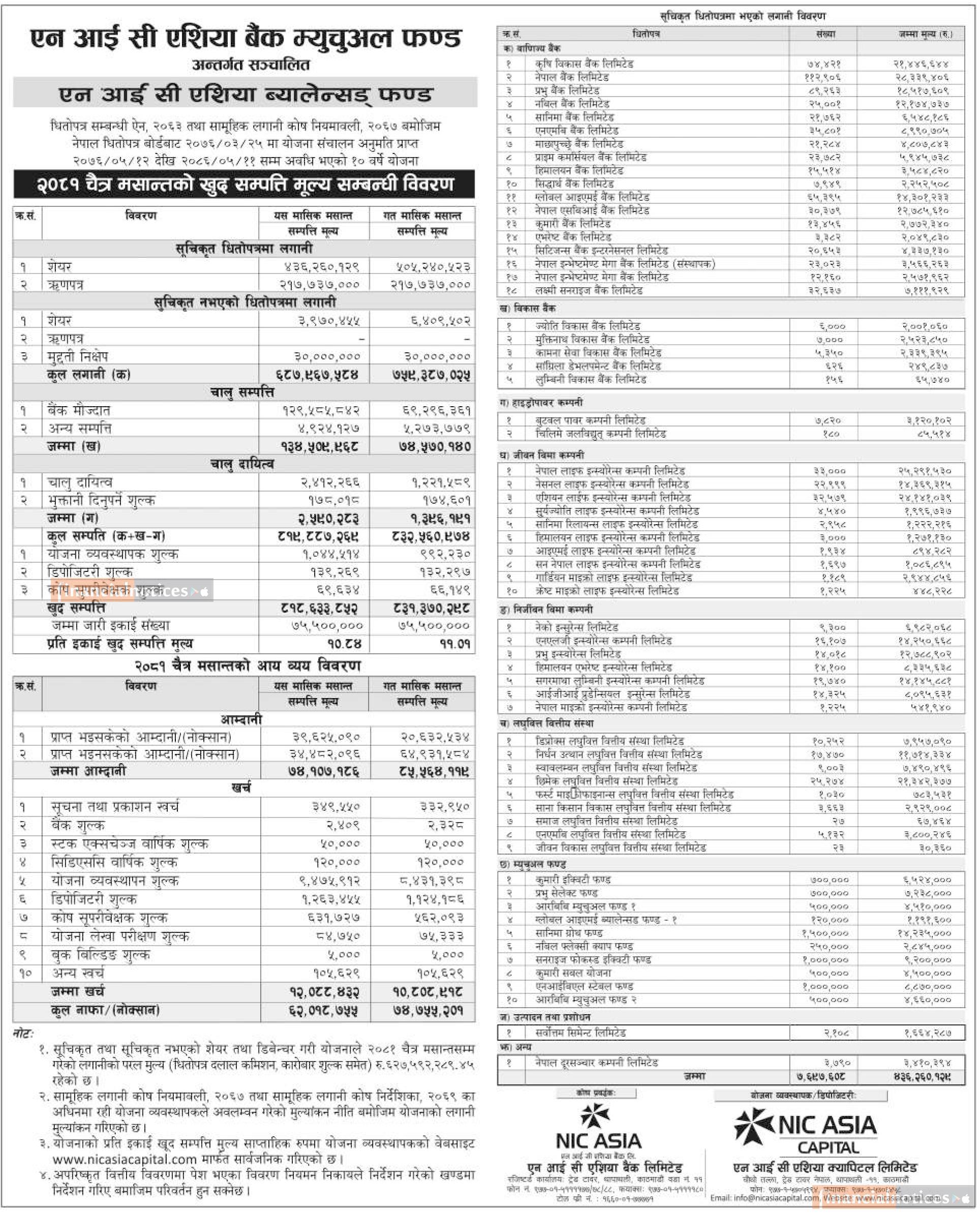 NIC Asia Capital has published “NIC Asia Balanced Fund” Net Assets Value till Chaitra, 2081