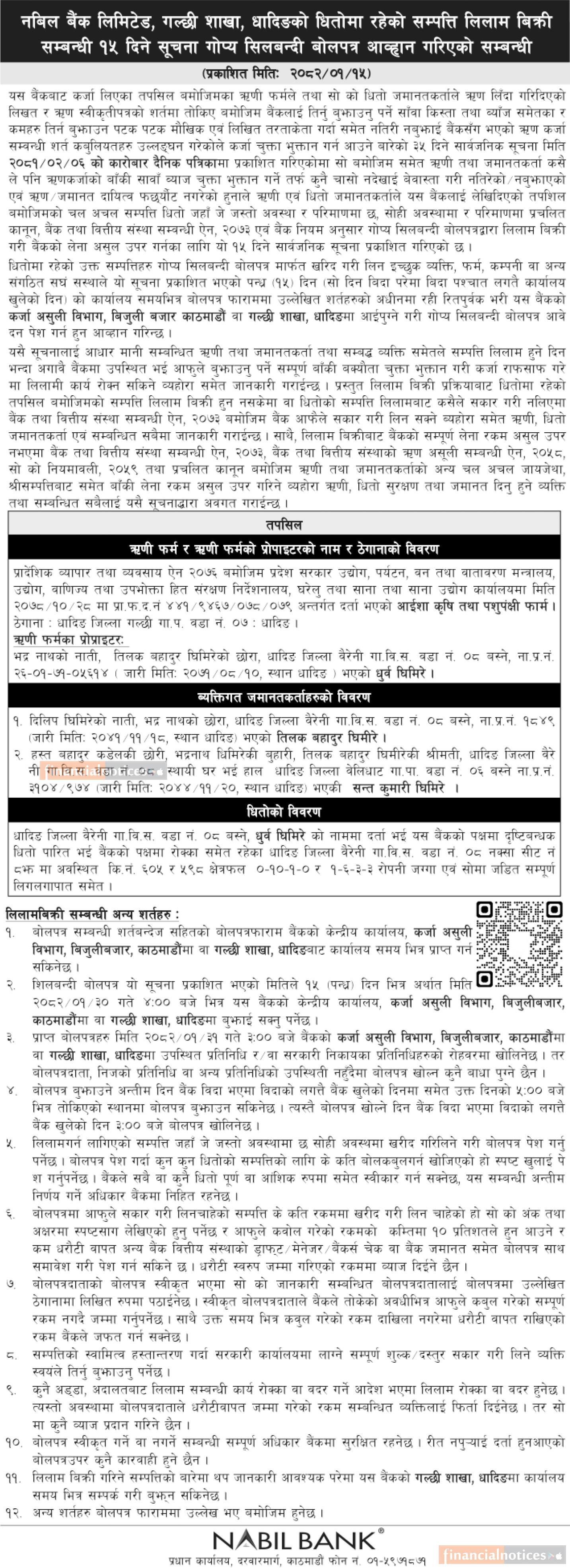धितोमा रहेको सम्पत्ति लिलाम बिक्रीको सूचना -