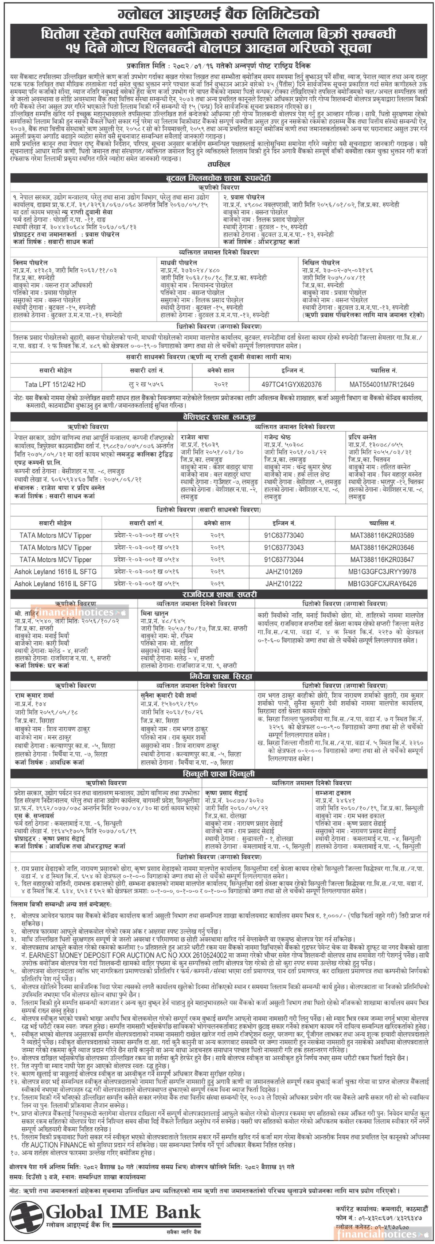 सम्पत्ति लिलाम बिक्री सम्बन्धी १५ दिने गोप्य शिलबन्दी बोलपत्र आव्हानको सूचना