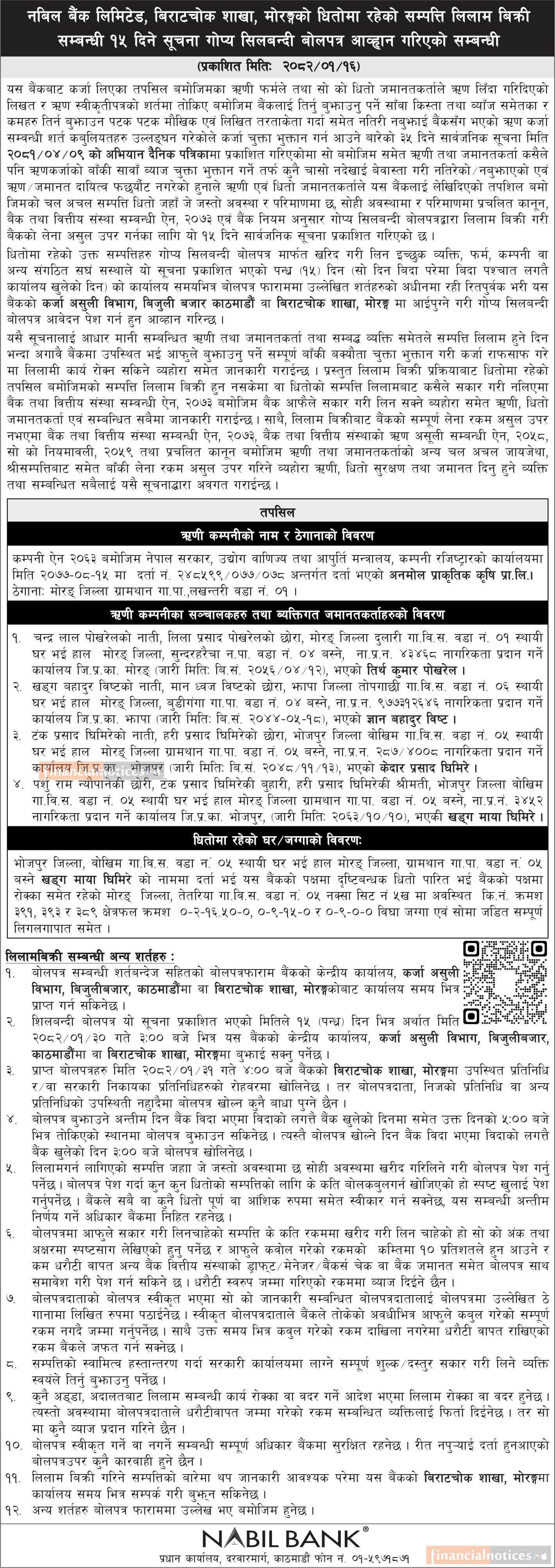 मोरङको धितोमा रहेको सम्पत्ति लिलाम बिक्री सम्बन्धी १५ दिने गोप्य शिलबन्दी बोलपत्र आव्हानको सूचना