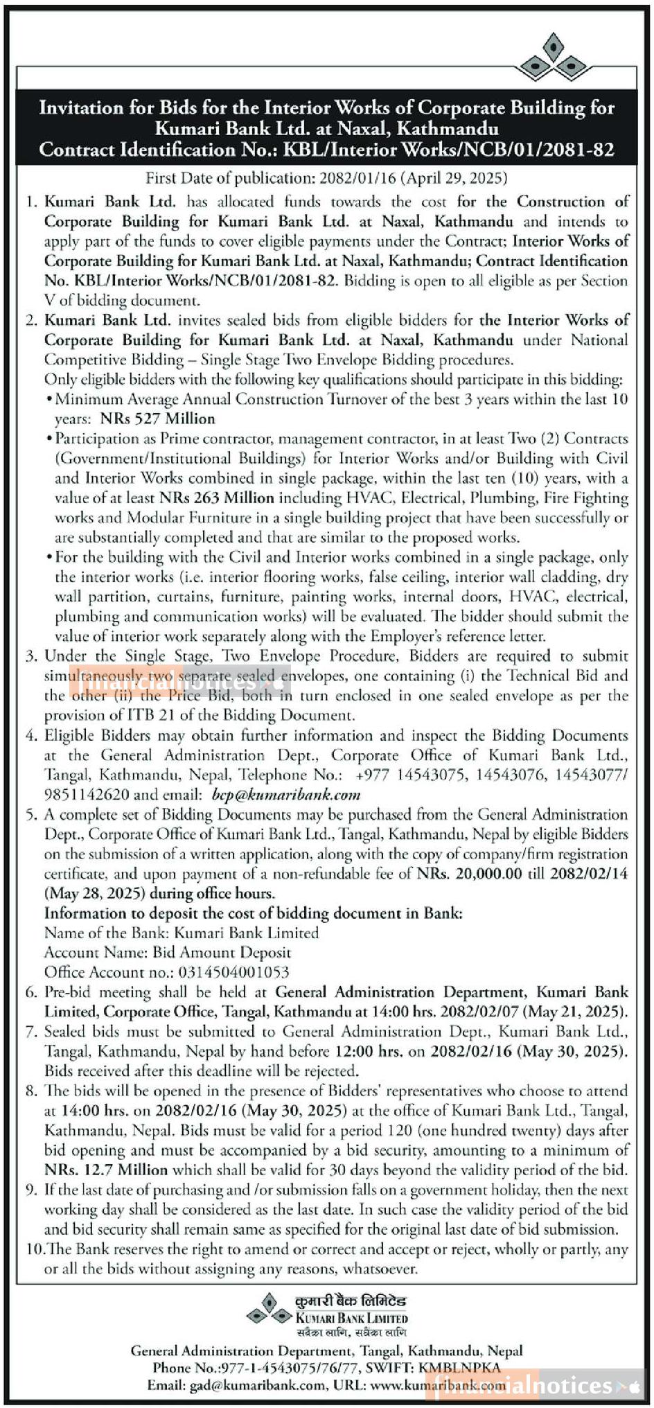 Published by Kumari Bank Ltd (KBL) on 2082-1-16