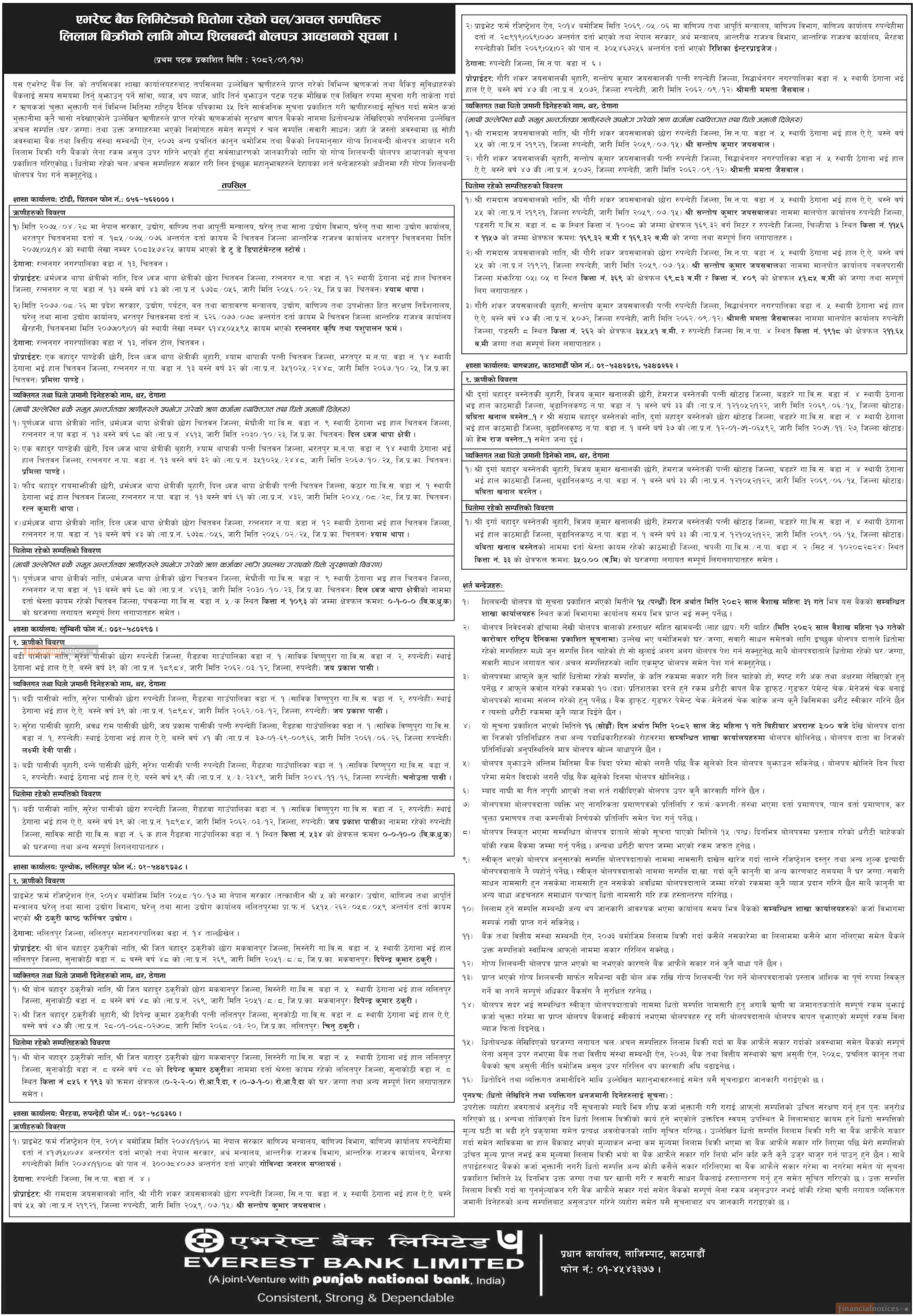 एभरेष्ट बैंकको धितोमा रहेको चल अचल सम्पत्तिहरु लिलाम बिक्रीको सूचना