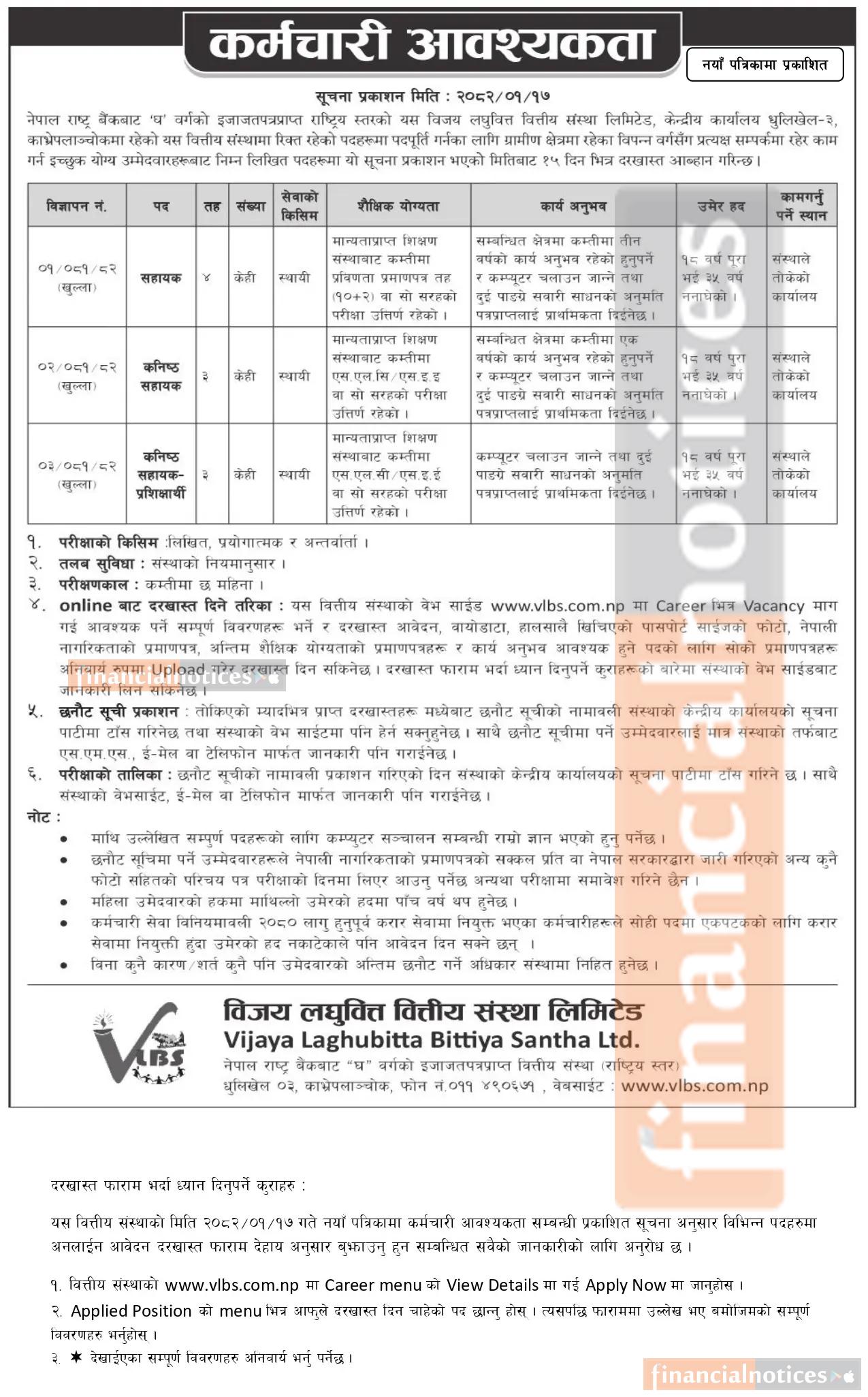 लघुवित्तमा कर्मचारी आवश्यकता सम्बन्धी सूचना - Career Opportunities