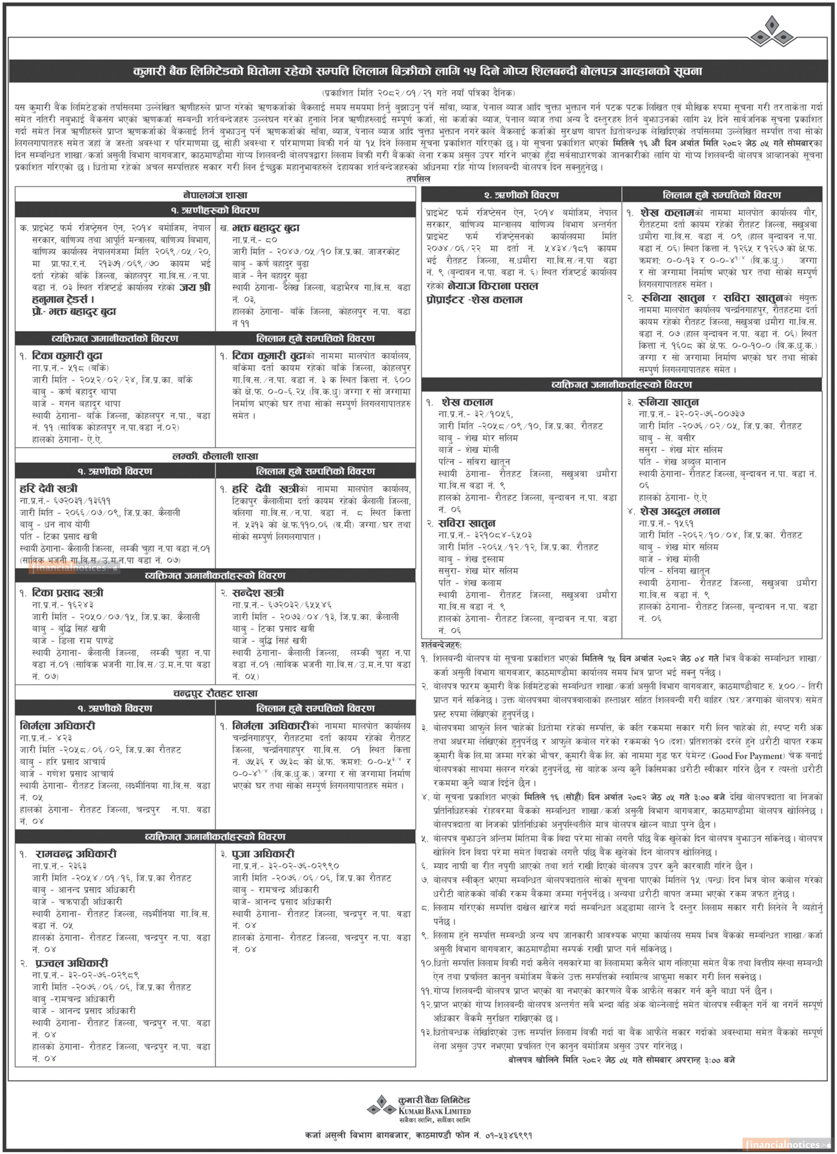 Published by Kumari Bank Ltd (KBL) on 2082-1-21