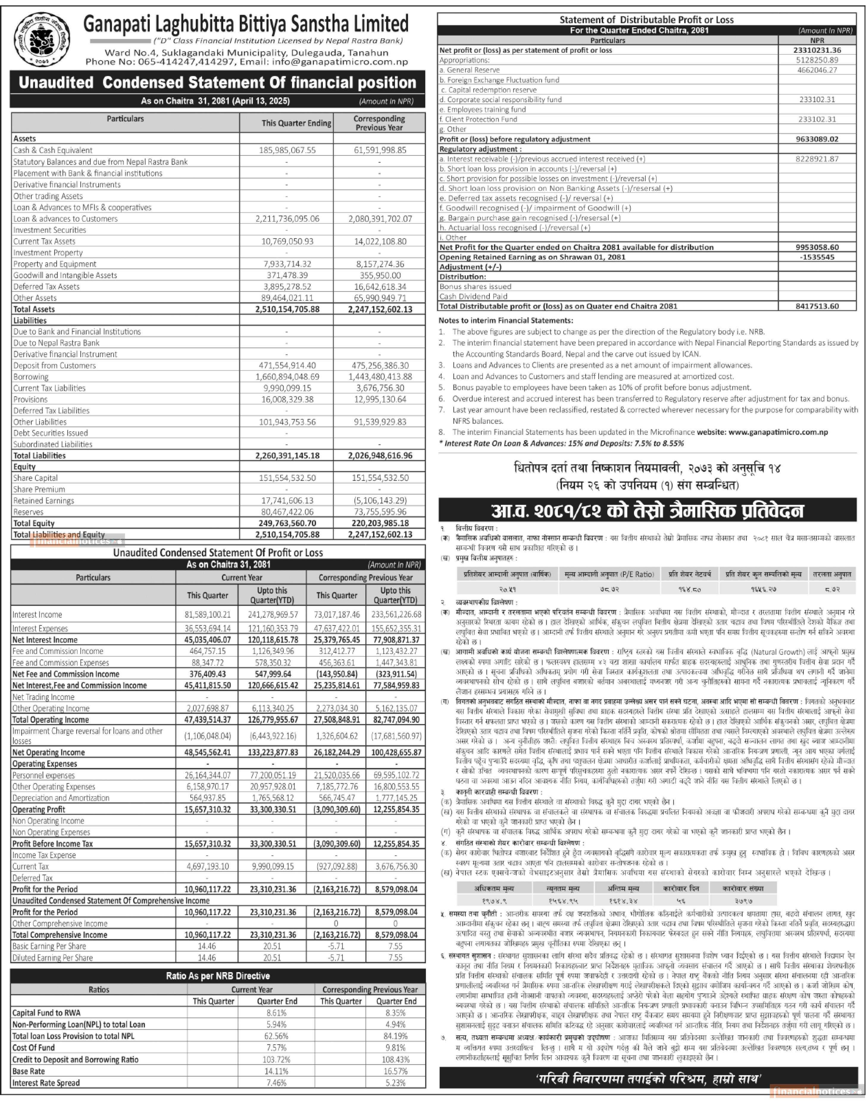 गणपति लघुवित्तको तेस्रो त्रैमासमा खुद नाफा ३ करोड ३३ लाख रुपैयाँ