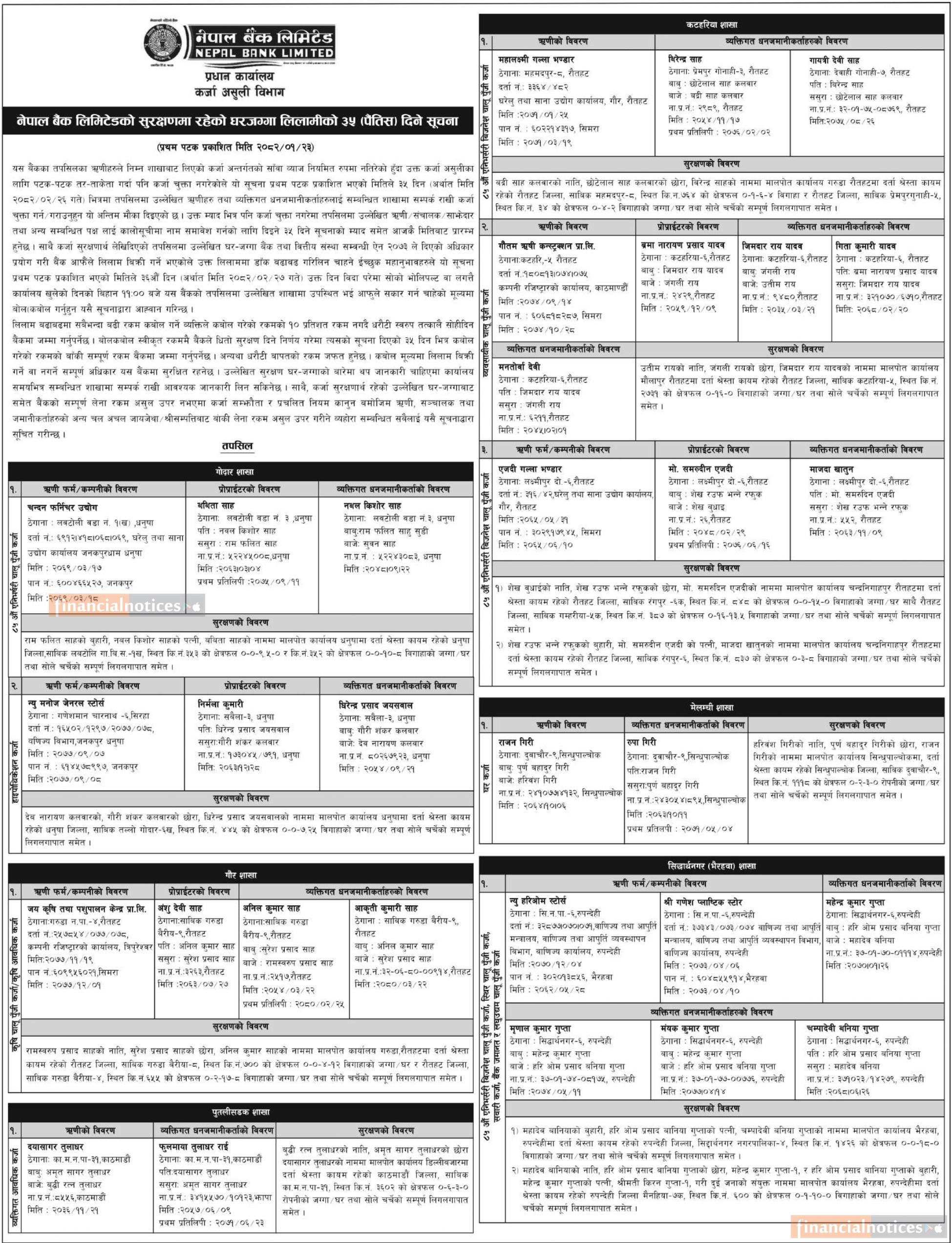 नेपाल बैंकको सुरक्षणमा रहेको घरजग्गा लिलामीको ३५ दिने सूचना