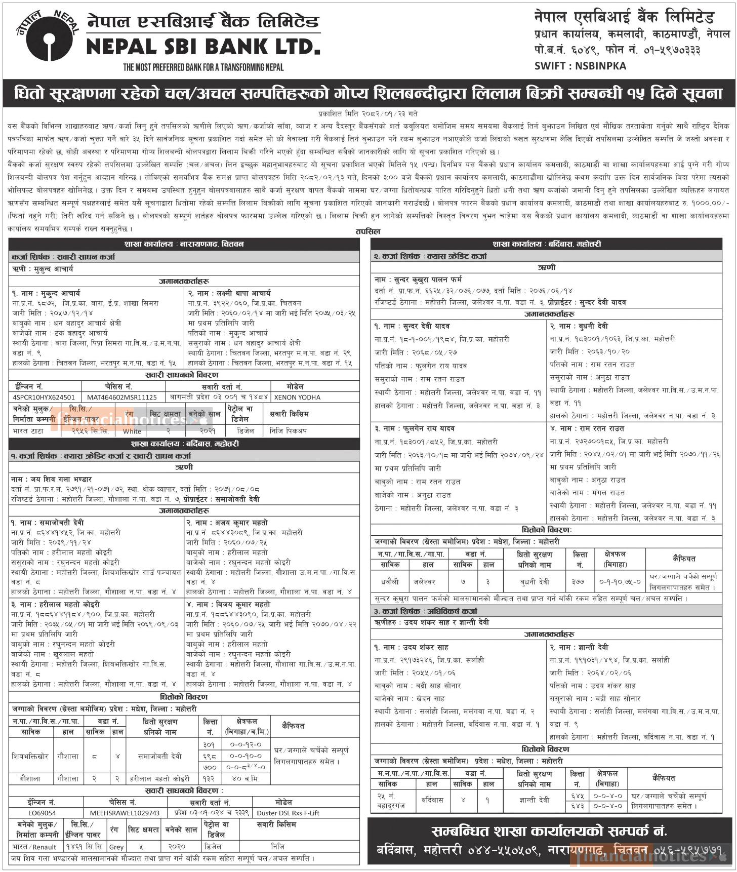 धितो सुरक्षणमा रहेको चल अचल सम्पत्तिहरुको गोप्य शिलबन्दीद्धारा लिलाम बिक्री सम्बन्धी सूचना