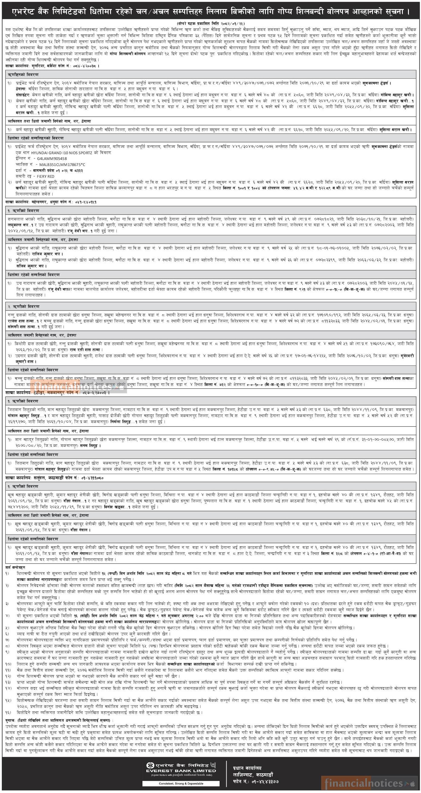 एभरेष्ट बैंकको धितोमा रहेको चल अचल सम्पत्तिहरु लिलाम बिक्रीको सूचना