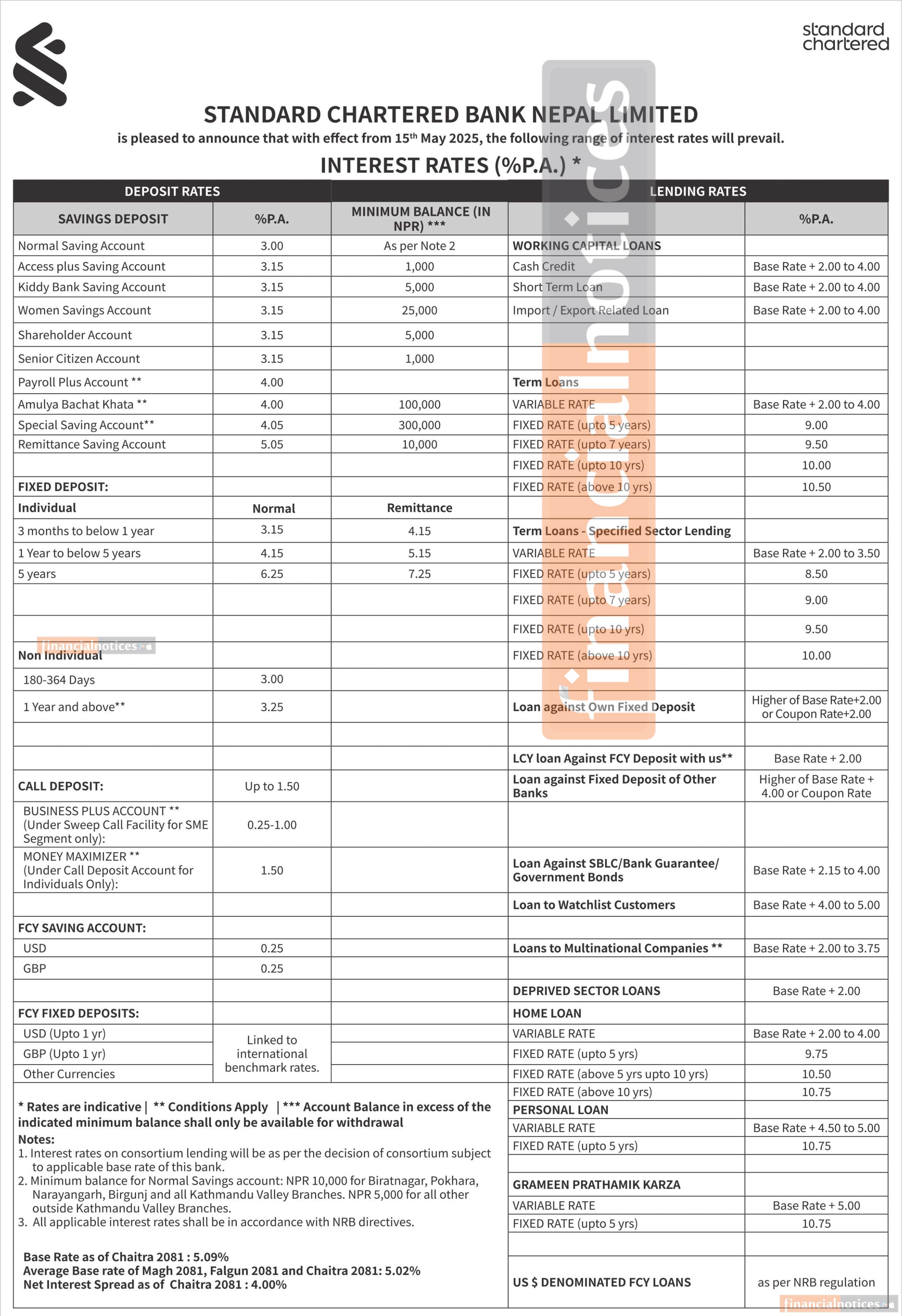 स्ट्यान्डर्ड चार्टर्ड बैंकको जेठ महिनाको ब्याजदर सम्बन्धी सूचना - Interest Rates Notice -