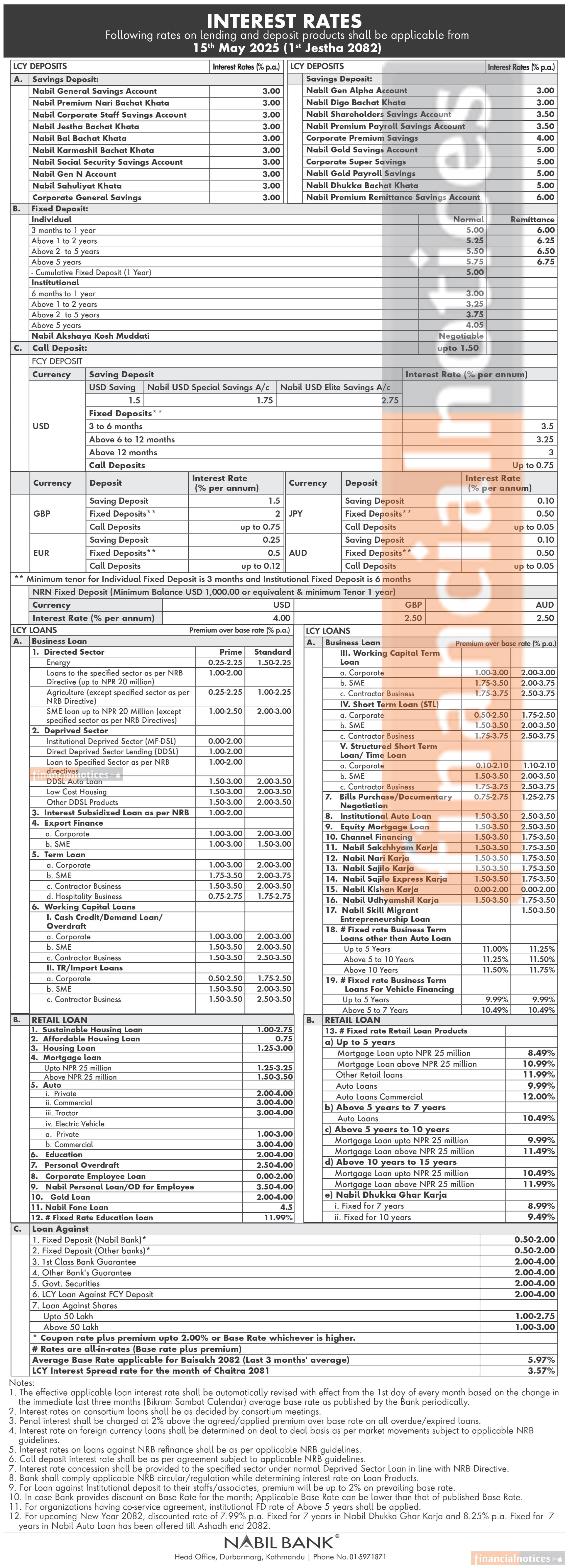 नविल बैंकको जेठदेखि नयाँ ब्याजदर लागु हुने सम्बन्धी सूचना - Interest Rates Notice -