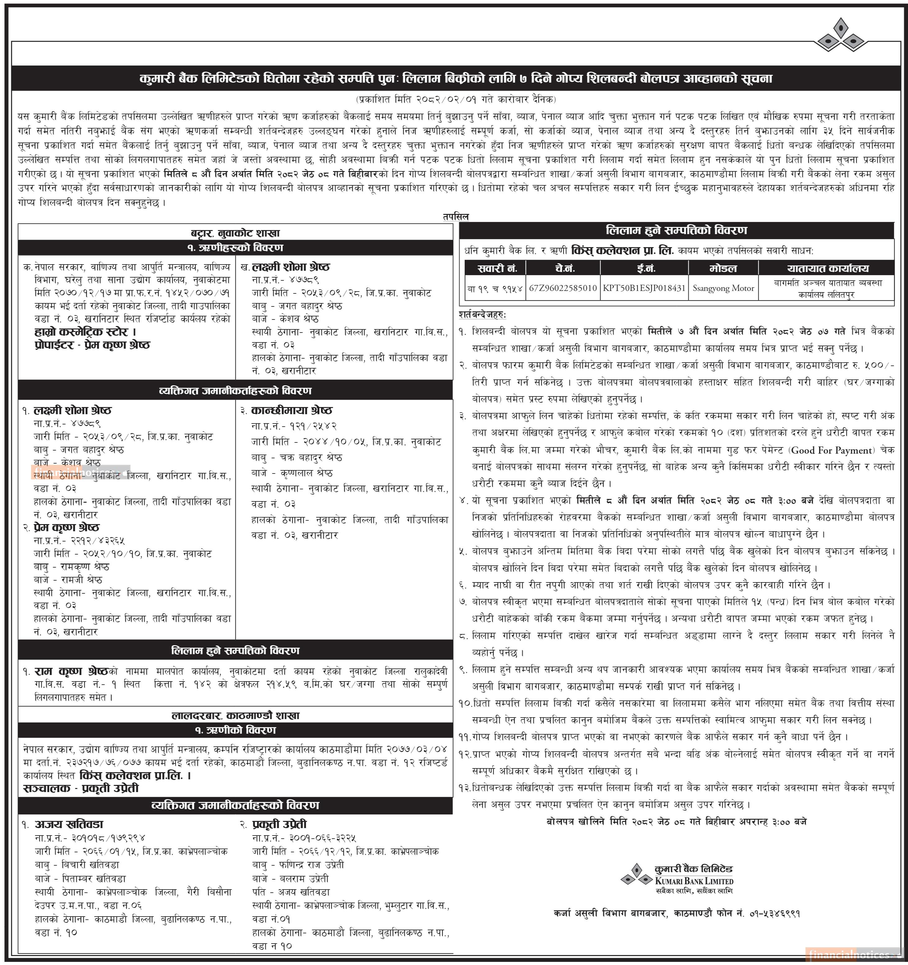 Published by Kumari Bank Ltd (KBL) on 2082-2-1