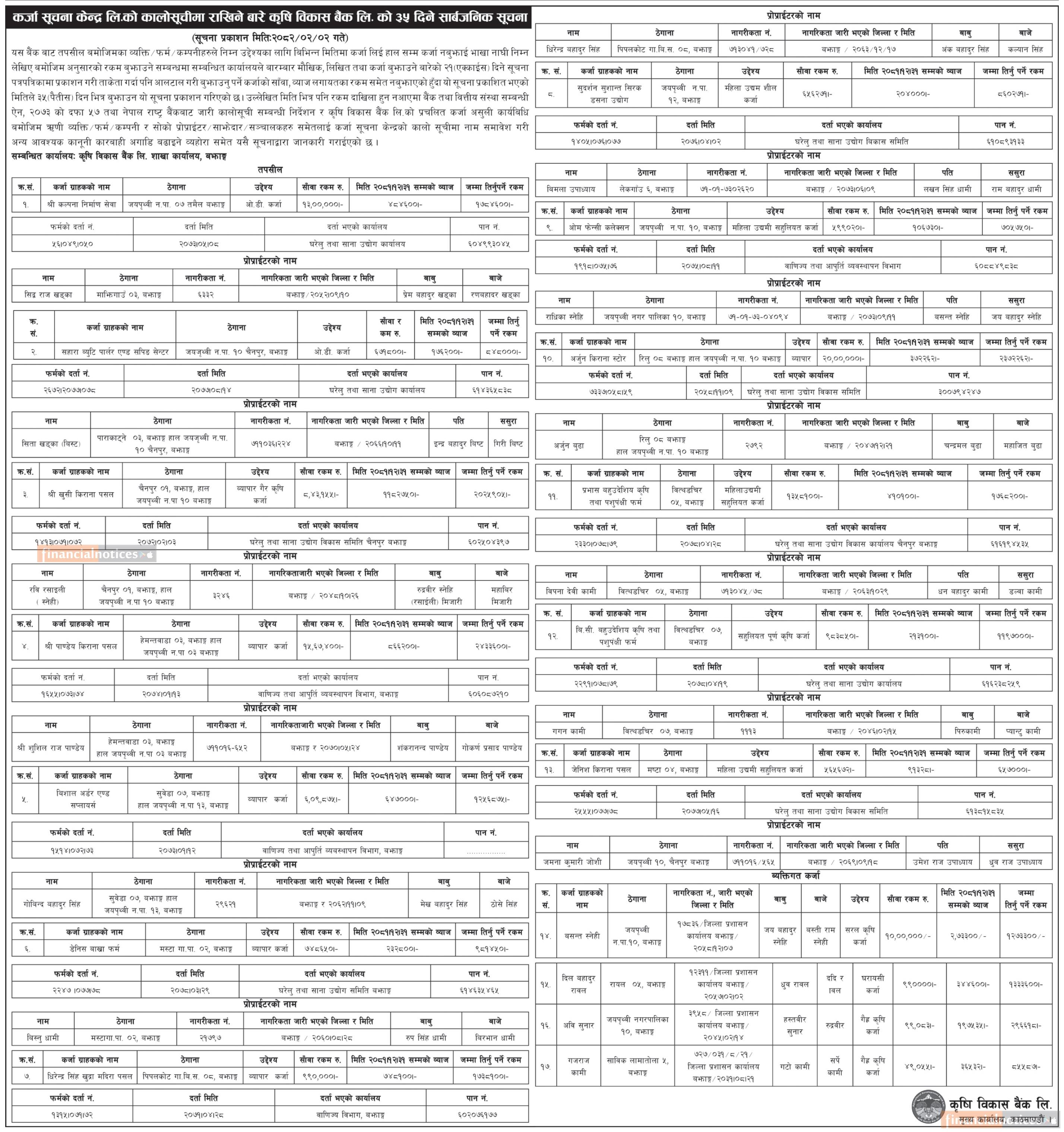 कर्जा सूचना केन्द्रको कालोसूचीमा राखिनेबारे कृषि विकास बैंकको सार्वजनिक सूचना -