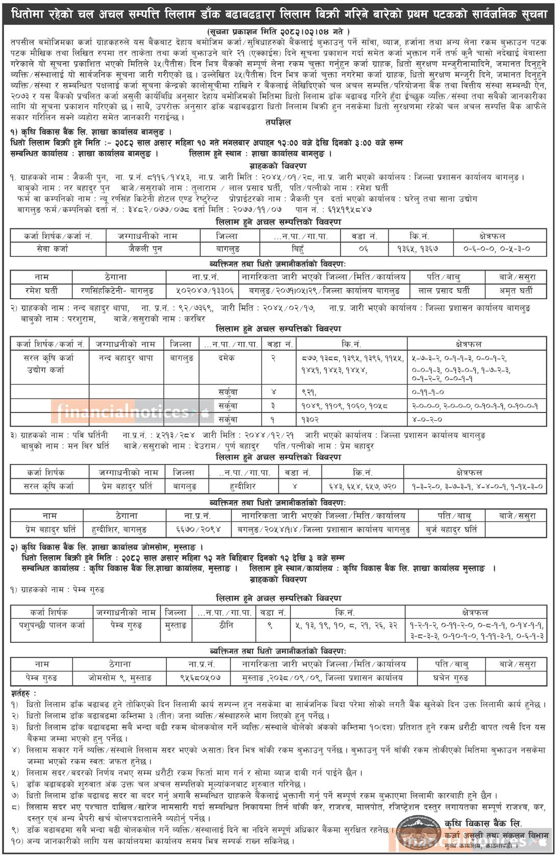 धितोमा रहेको चलअचल लिलाम डाँक बढाबढद्धारा लिलाम बिक्री गर्ने बारेको सूचना
