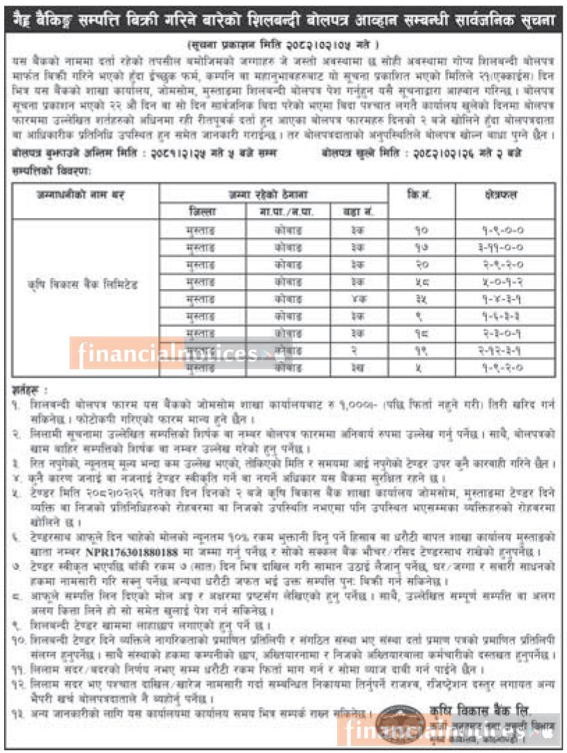 गैह्र बैंकिङ्ग सम्पत्ति बिक्री गरिने बारेको शिलबन्दी बोलपत्र आव्हान सम्बन्धी सूचना