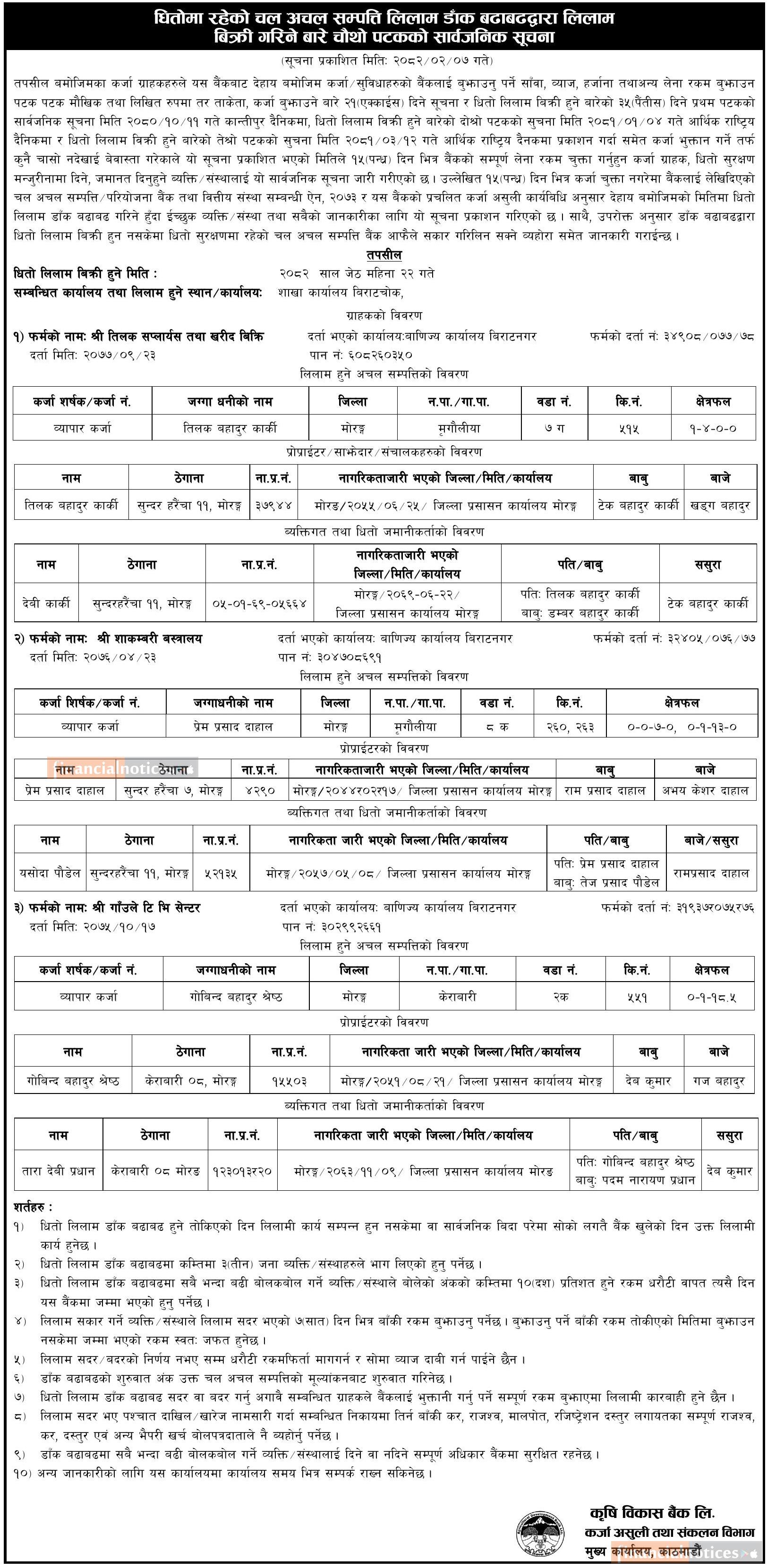 धितोमा रहेको चलअचल लिलाम डाँक बढाबढद्धारा लिलाम बिक्री गर्ने बारे चौथो पटकको सूचना