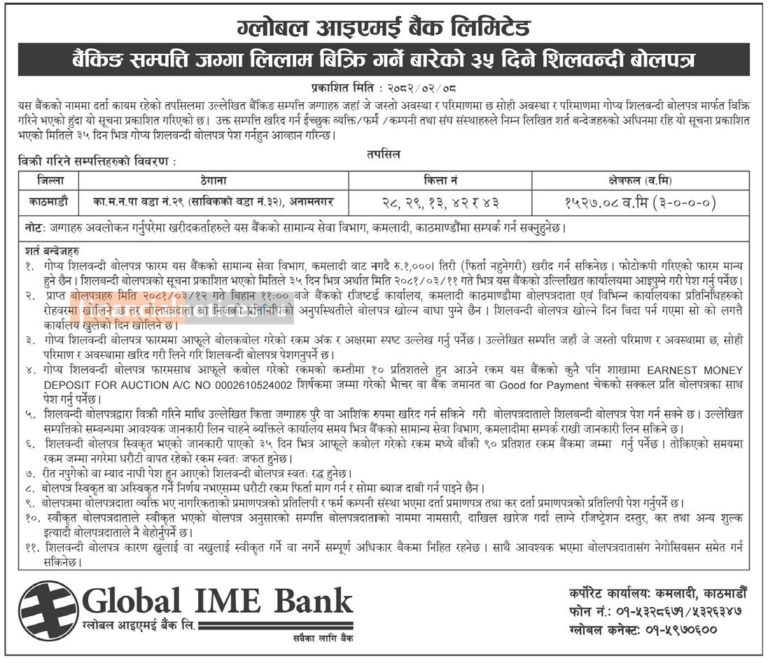 बैंकिङ सम्पत्ति जग्गा लिलाम बिक्री गर्ने बारेको सूचना