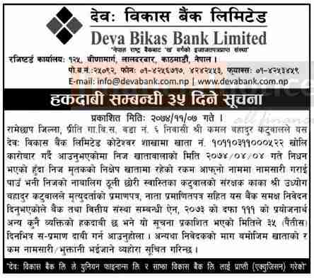 Published by Deva Bikas Bank Annapurna Post on 2074-11-07
