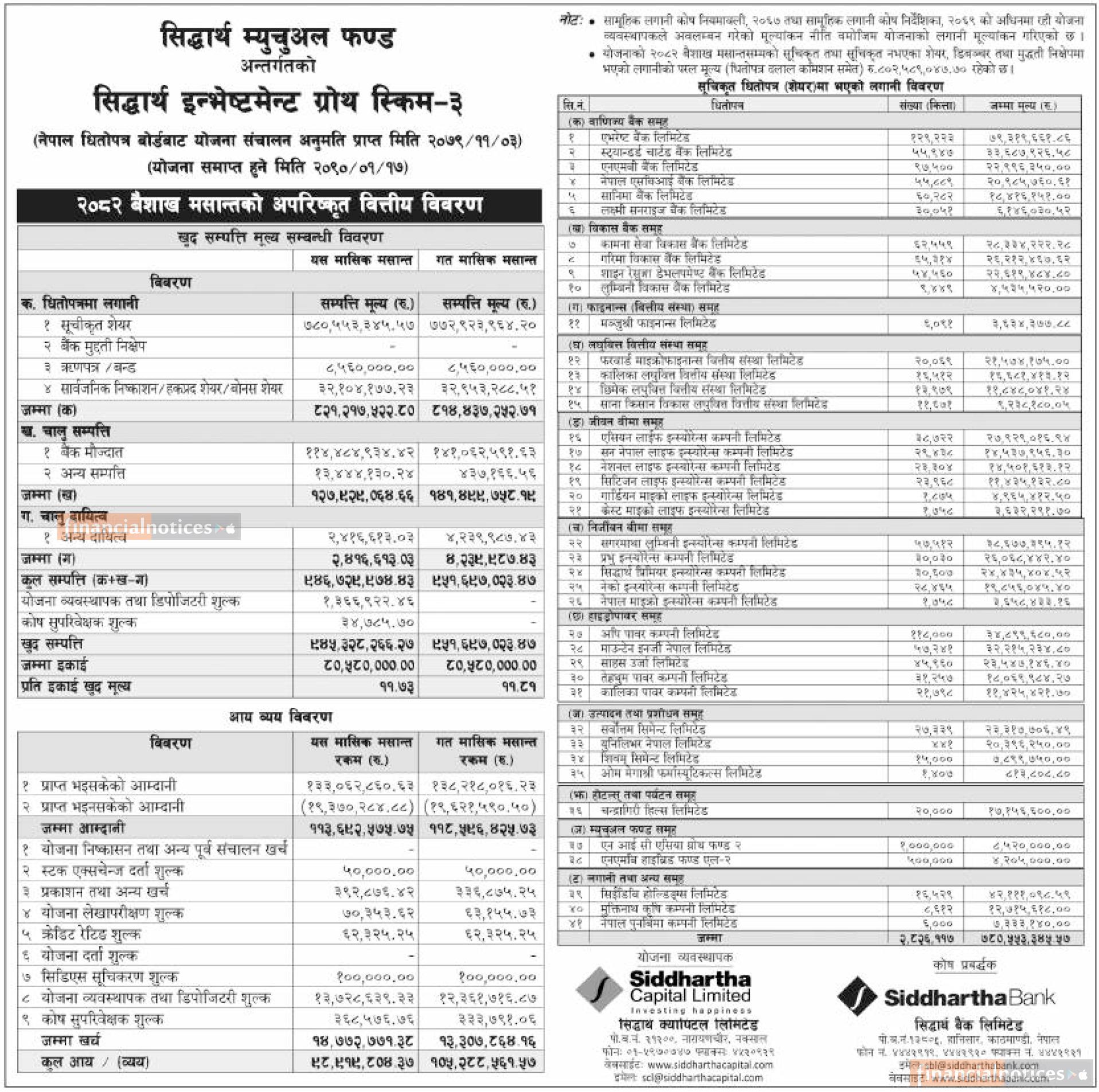 Siddhartha Capital has published “Siddhartha Investment Growth Scheme - 3” NAV till Baisakh, 2082