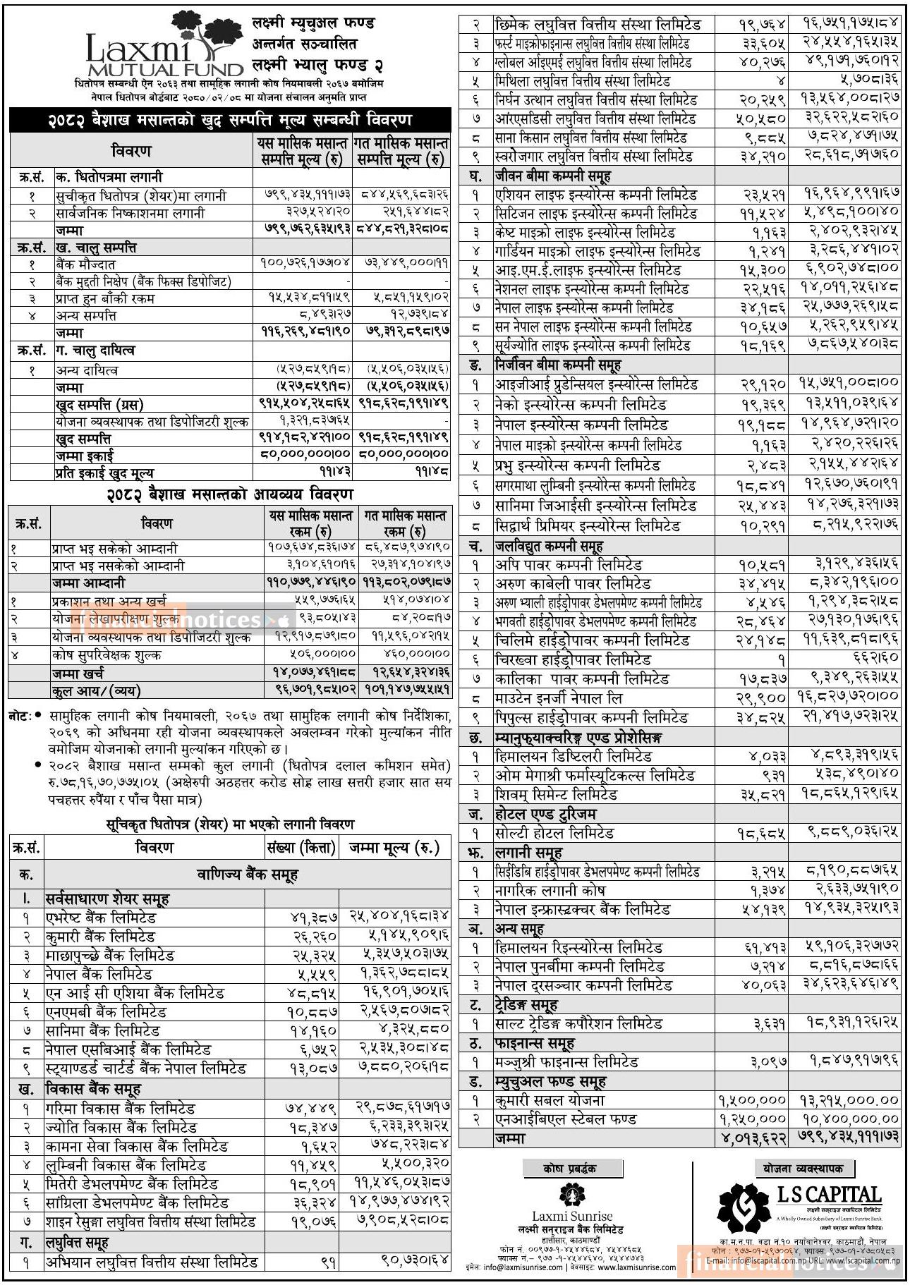 LS Capital has published the “Laxmi Value Fund-2” NAV till Baisakh, 2082