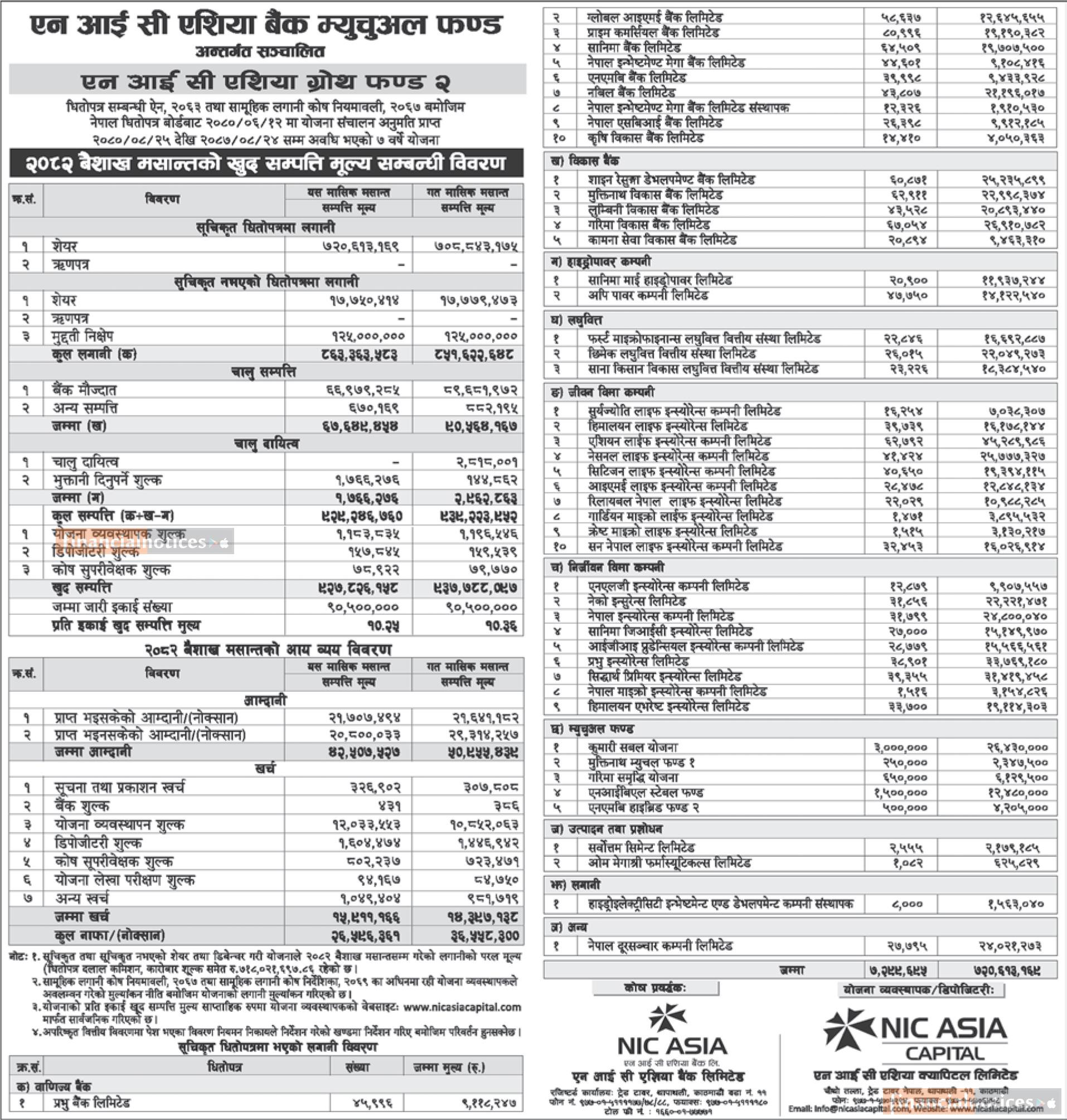 NIC Asia Capital has published "NIC Asia Growth Fund 2" NAV till Baisakh, 2082