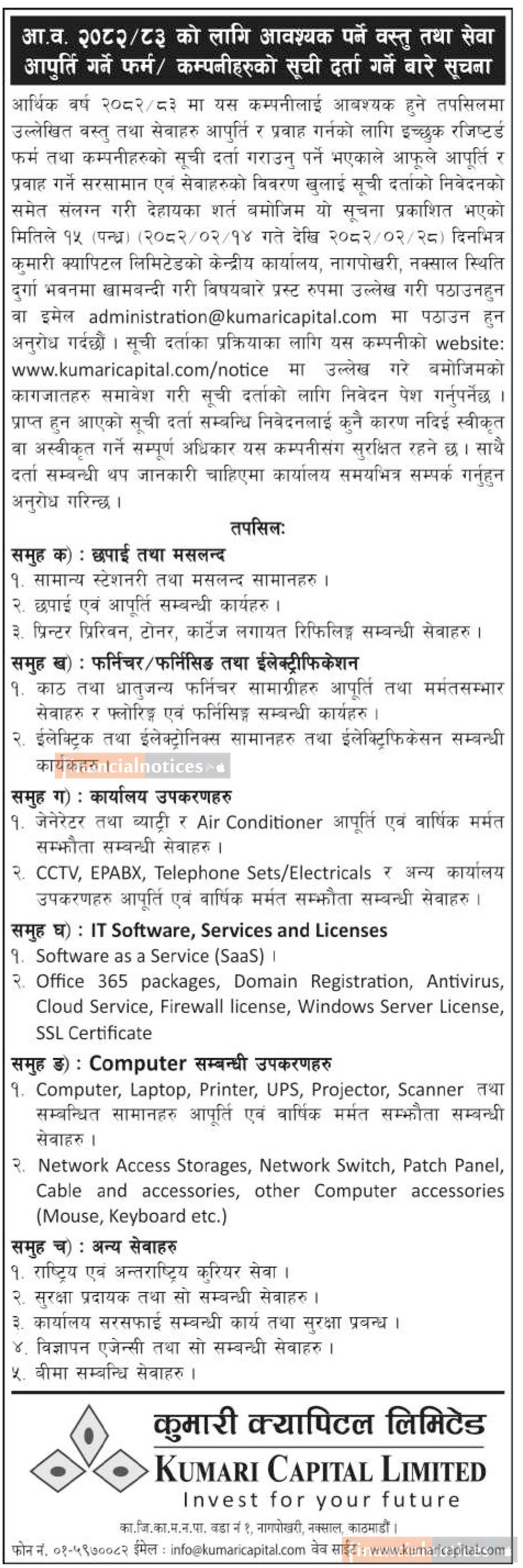 सूची दर्ता गर्ने सम्बन्धी सूचना