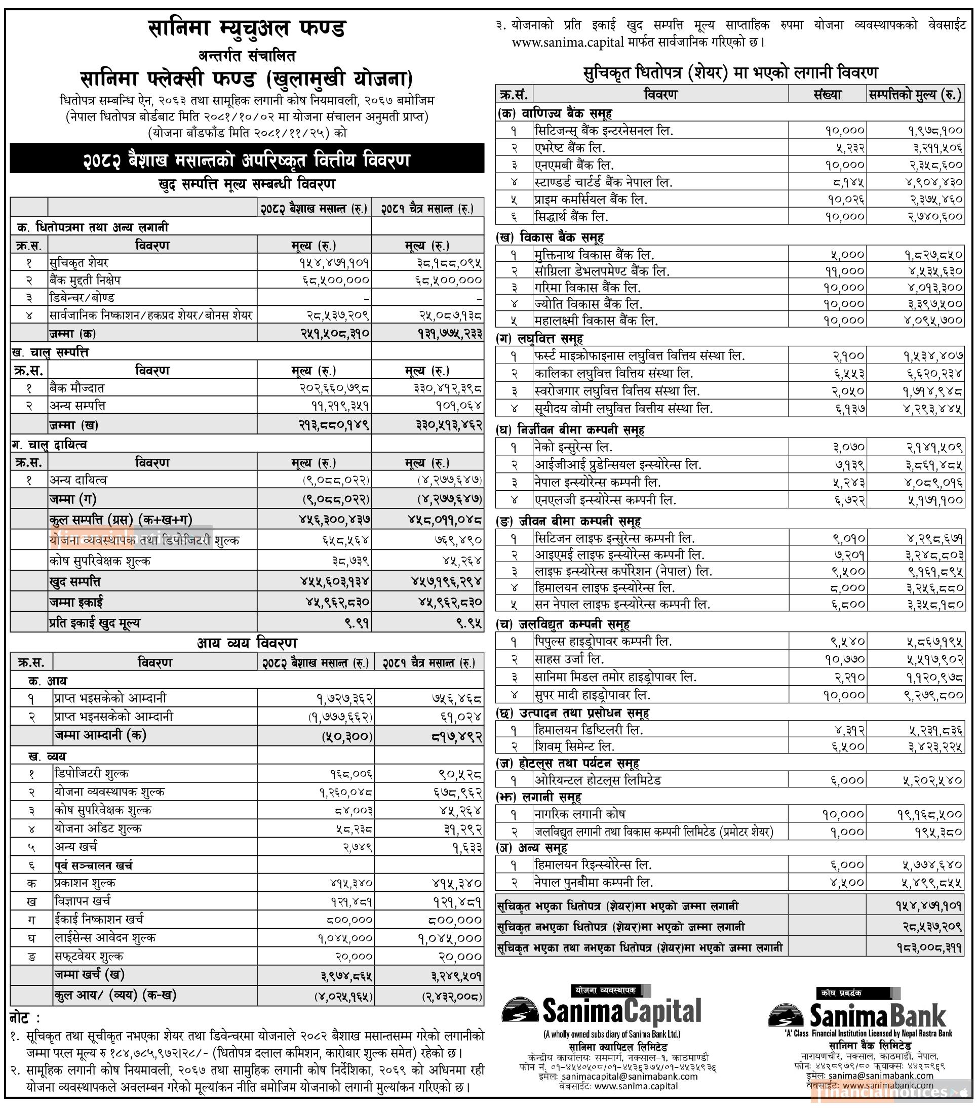 Sanima Capital Limited has published “Sanima Flexi Fund” NAV till Baisakh, 2082