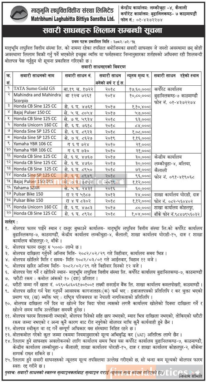 सवारी साधनहरु लिलाम बिक्री सूचना