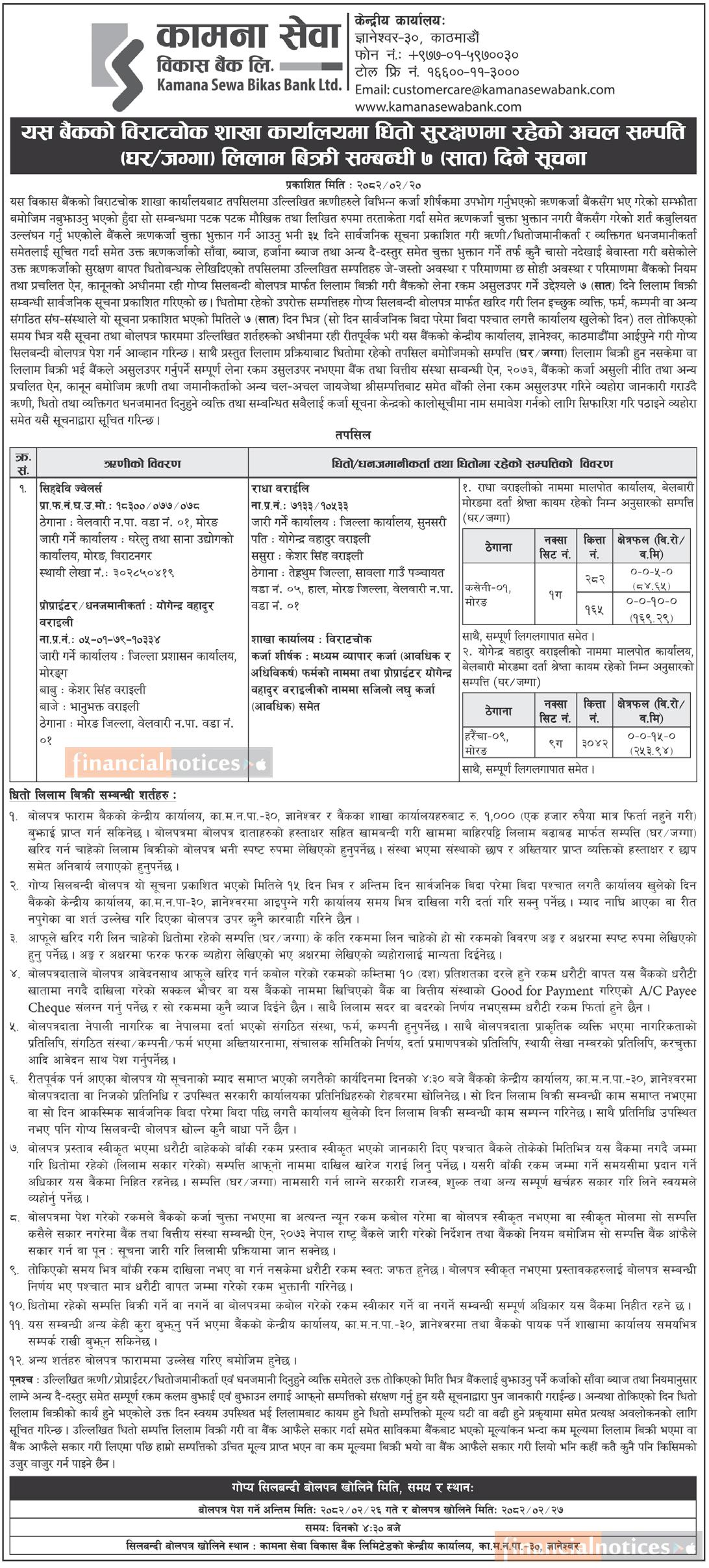 सुरक्षणमा रहेको अचल सम्पत्ति लिलाम बिक्री सम्बन्धी ७ दिने सूचना