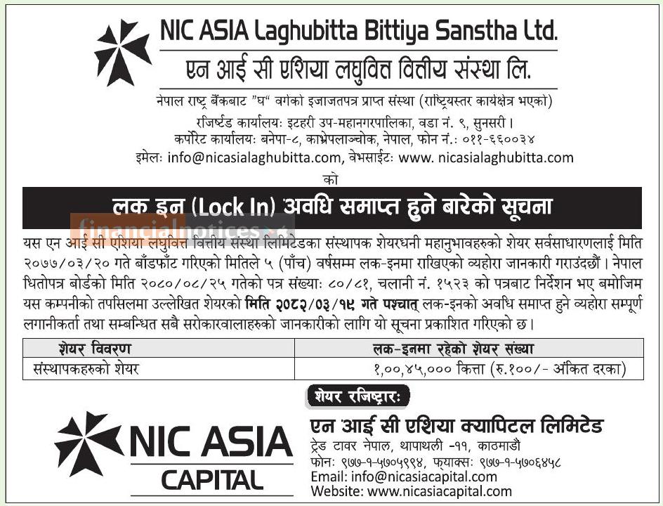लक इन अवधि समाप्त हुने बारेको सूचना