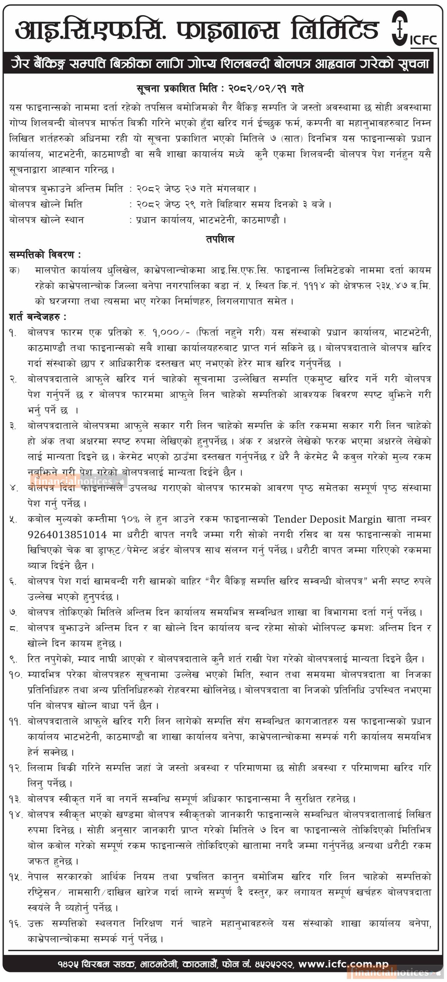 गैह्र बैंकिङ्ग सम्पत्ति लिलाम बिक्रीका लागि गोप्य शिलबन्दी बोलपत्र आव्हानको सूचना
