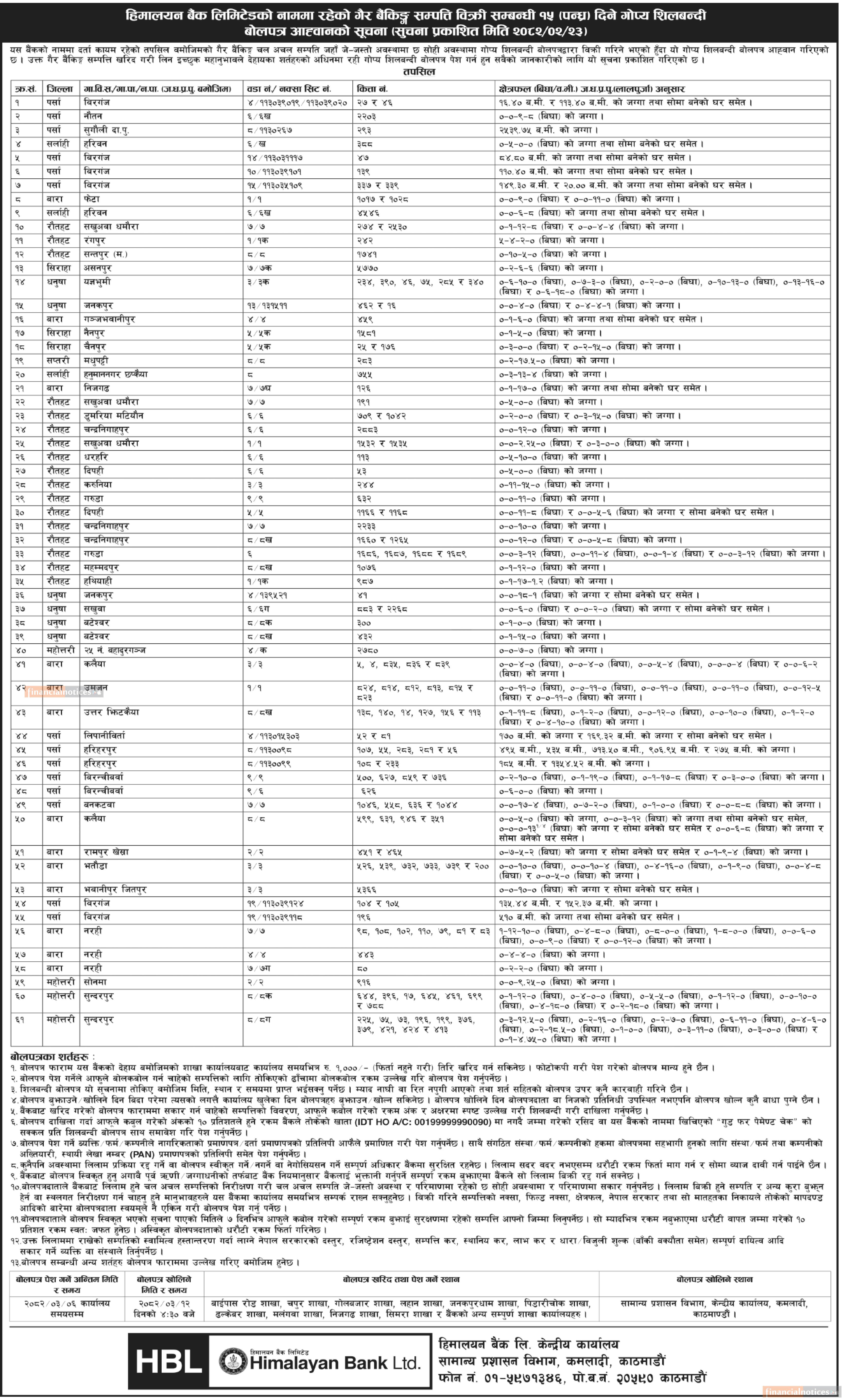 गैह्र बैंकिङ्ग सम्पत्ति लिलाम बिक्री सम्बन्धी १५ दिने गोप्य शिलबन्दी बोलपत्र आव्हानको सूचना