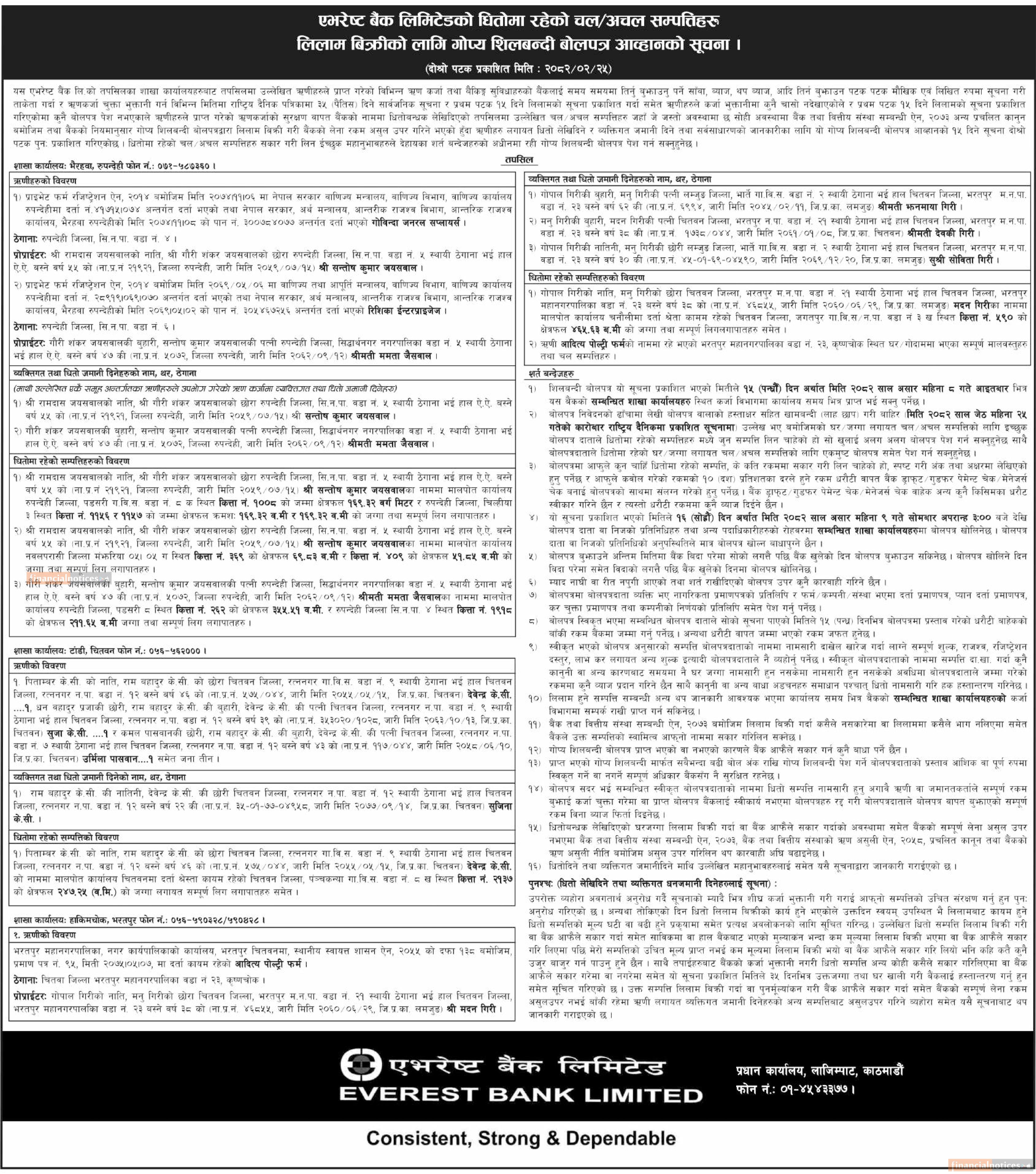 धितोमा रहेको अचल सम्पत्तिहरु लिलाम बिक्रीको लागि गोप्य शिलबन्दी बोलपत्र आव्हान सम्बन्धी सूचना