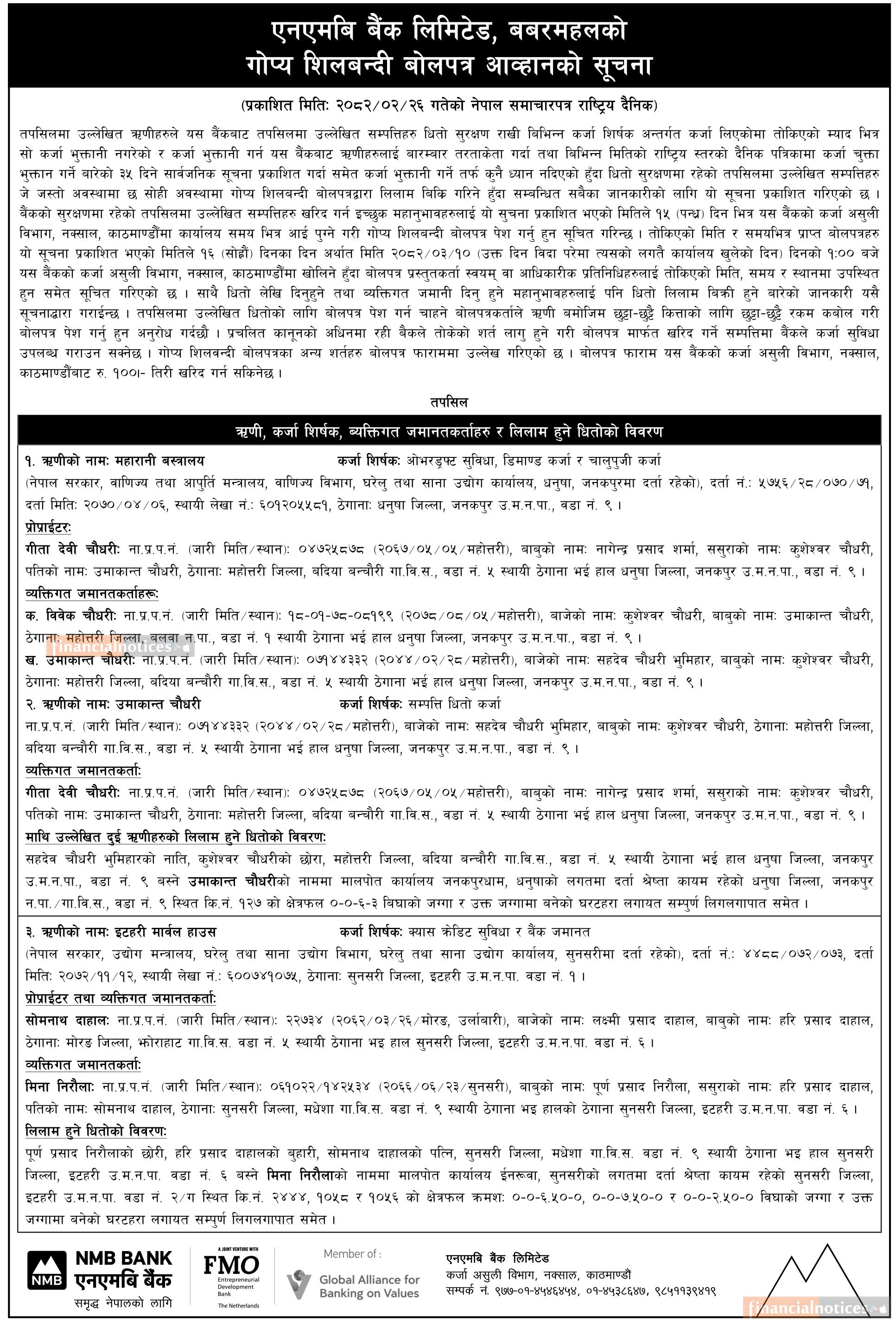 गोप्य शिलबन्दी बोलपत्र आव्हानको सूचना
