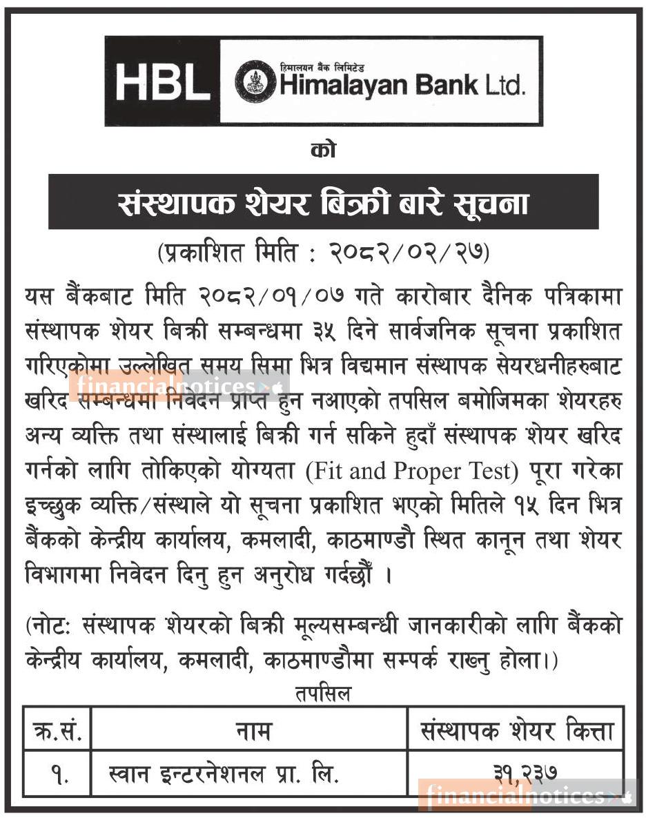 Published by Himalayan Bank Ltd on 2082-2-27