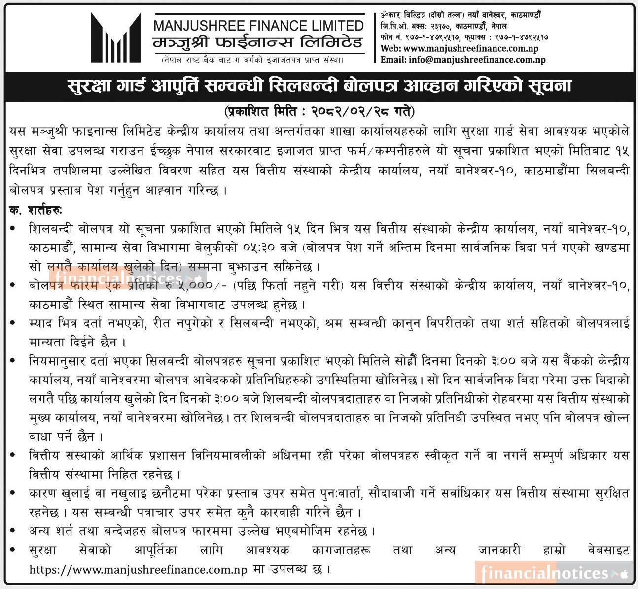 सुरक्षा गार्ड आपुर्ति सम्बन्धी शिलबन्दी बोलपत्र आव्हान सम्बन्धी सूचना