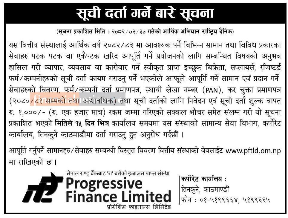 सूची दर्ता गर्ने सम्बन्धी सूचना