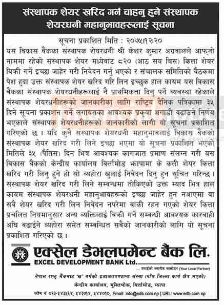 Published by Excel Dev. Bank Annapurna Post on 2075-12-20