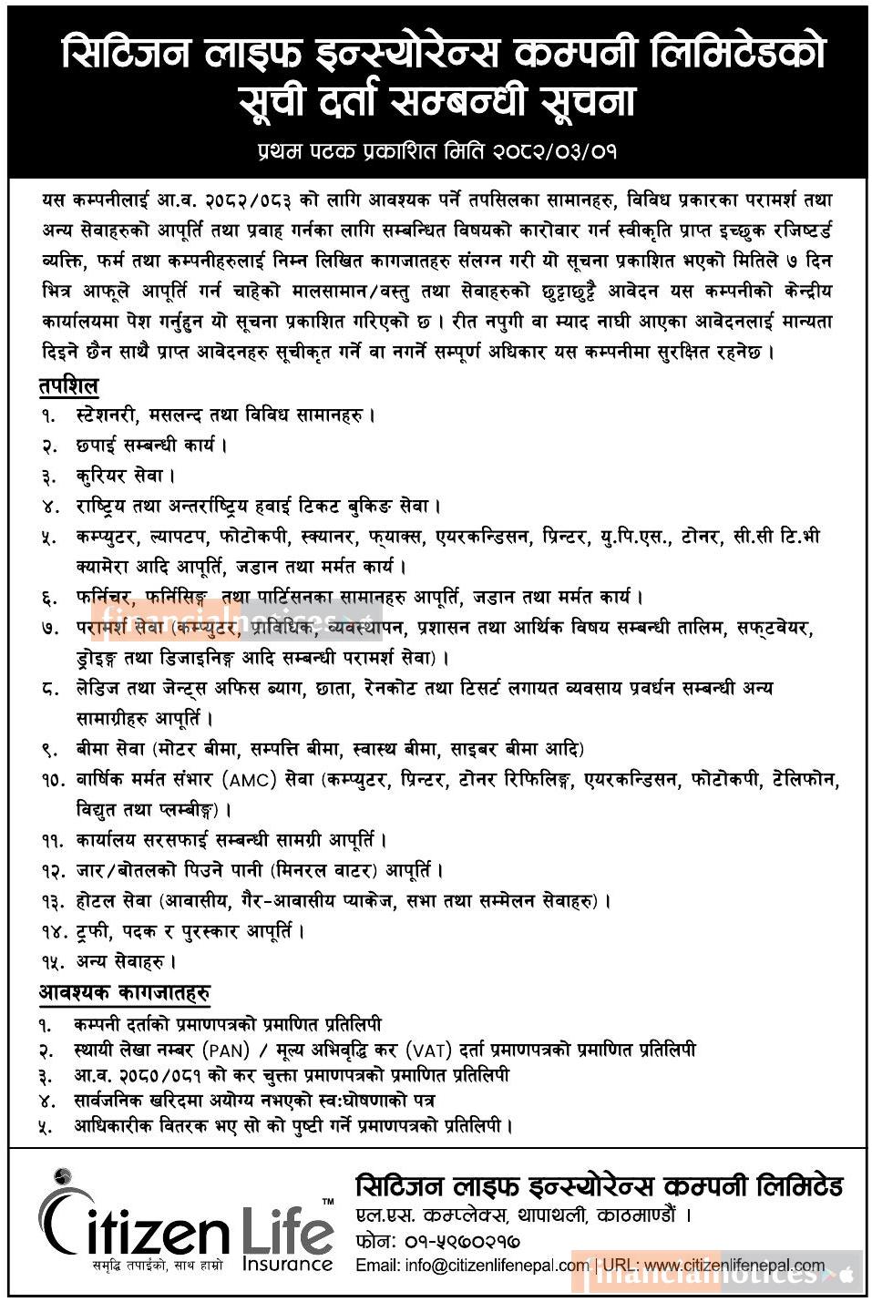 सूची दर्ता गर्ने सम्बन्धी सूचना