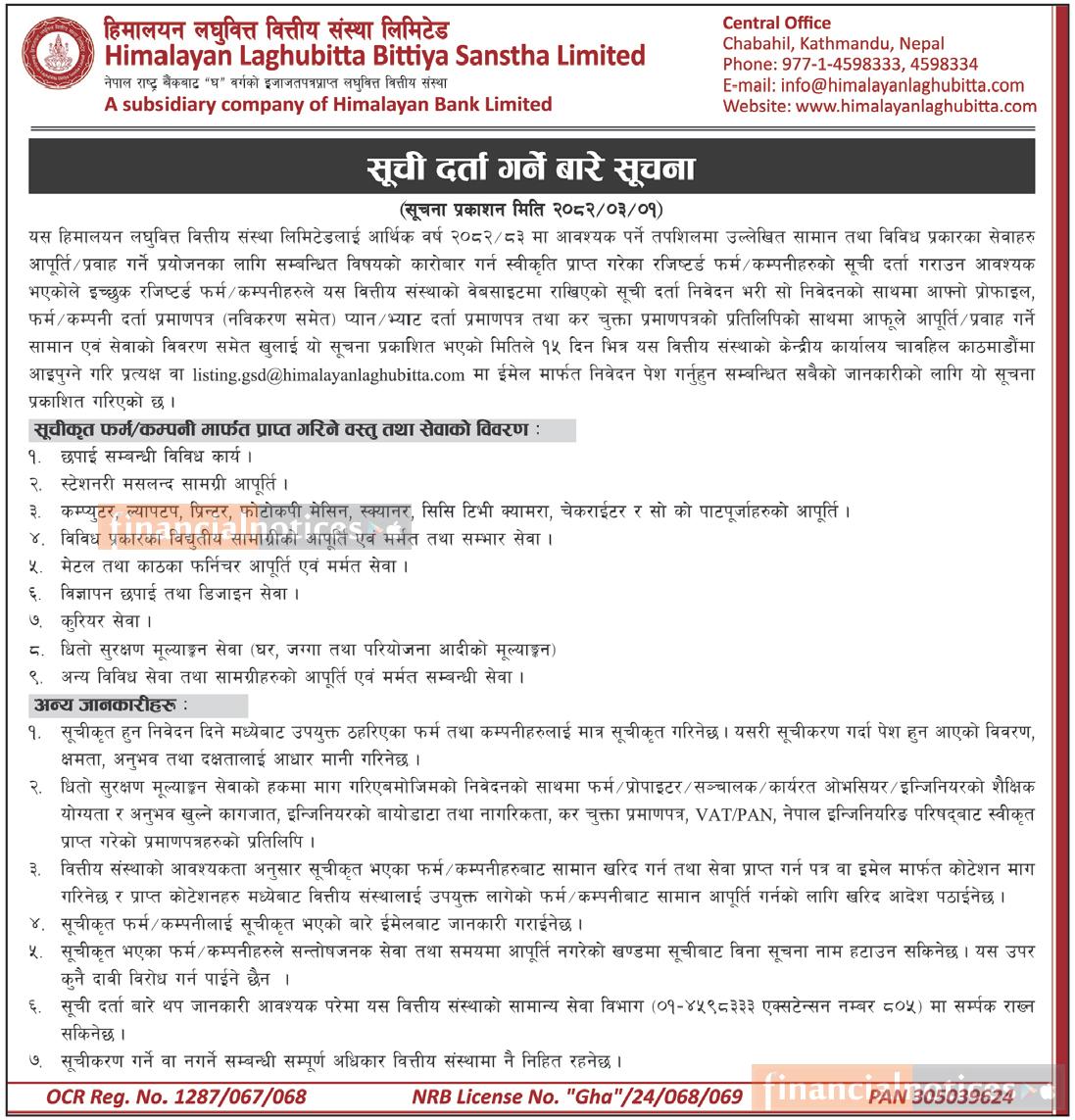 सूची दर्ता गर्ने बारे सूचना