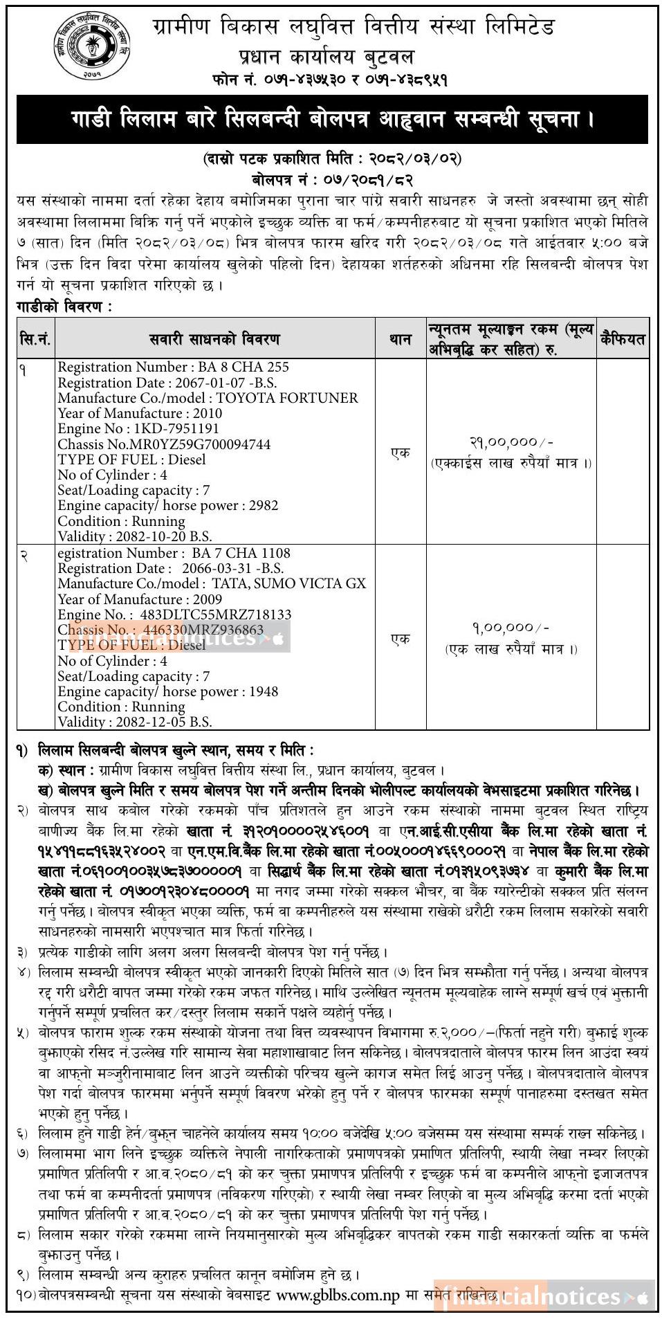 गाडी लिलाम बारे शिलबन्दी बोलपत्र आव्हानको सूचना