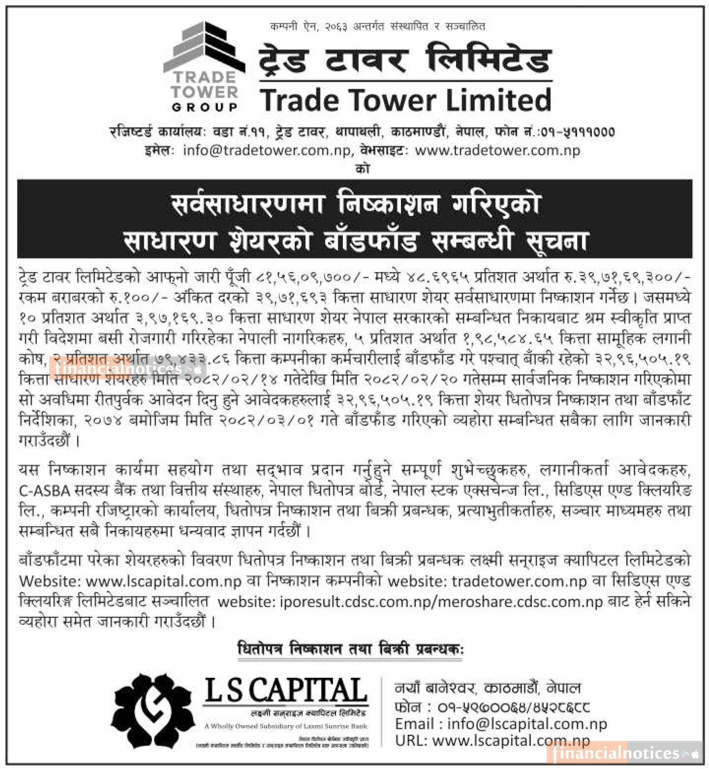 ट्रेड टावर लिमिटेडको आईपिओ बाँडफाँड सम्बन्धी सूचना
