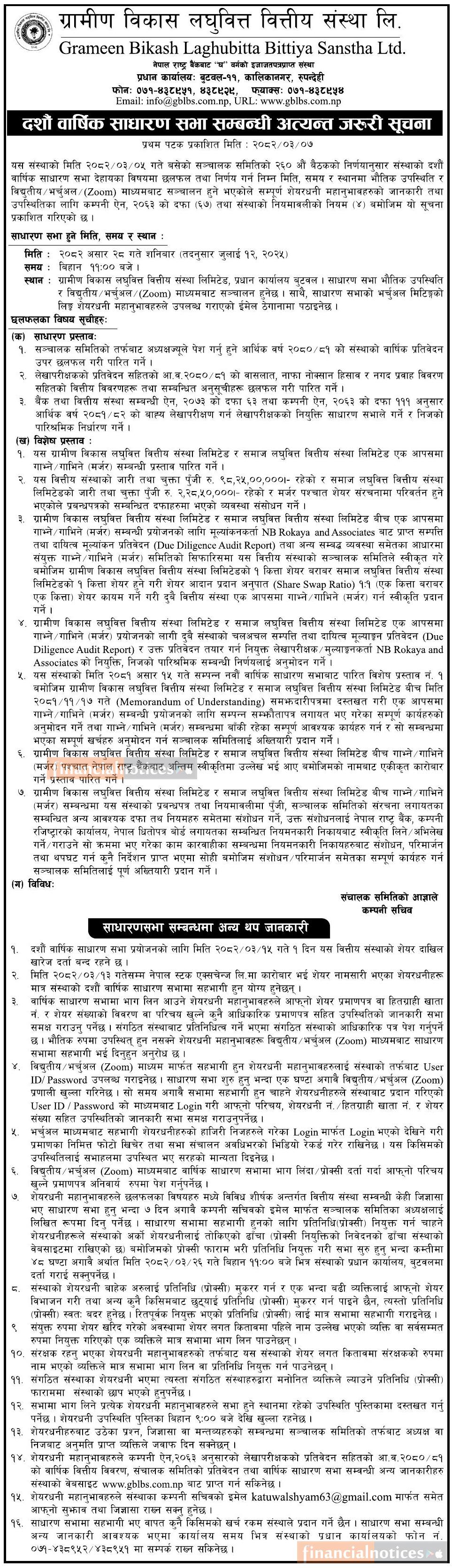 दशौँ वार्षिक साधारण सभा सम्बन्धी अत्यन्त जरुरी सूचना