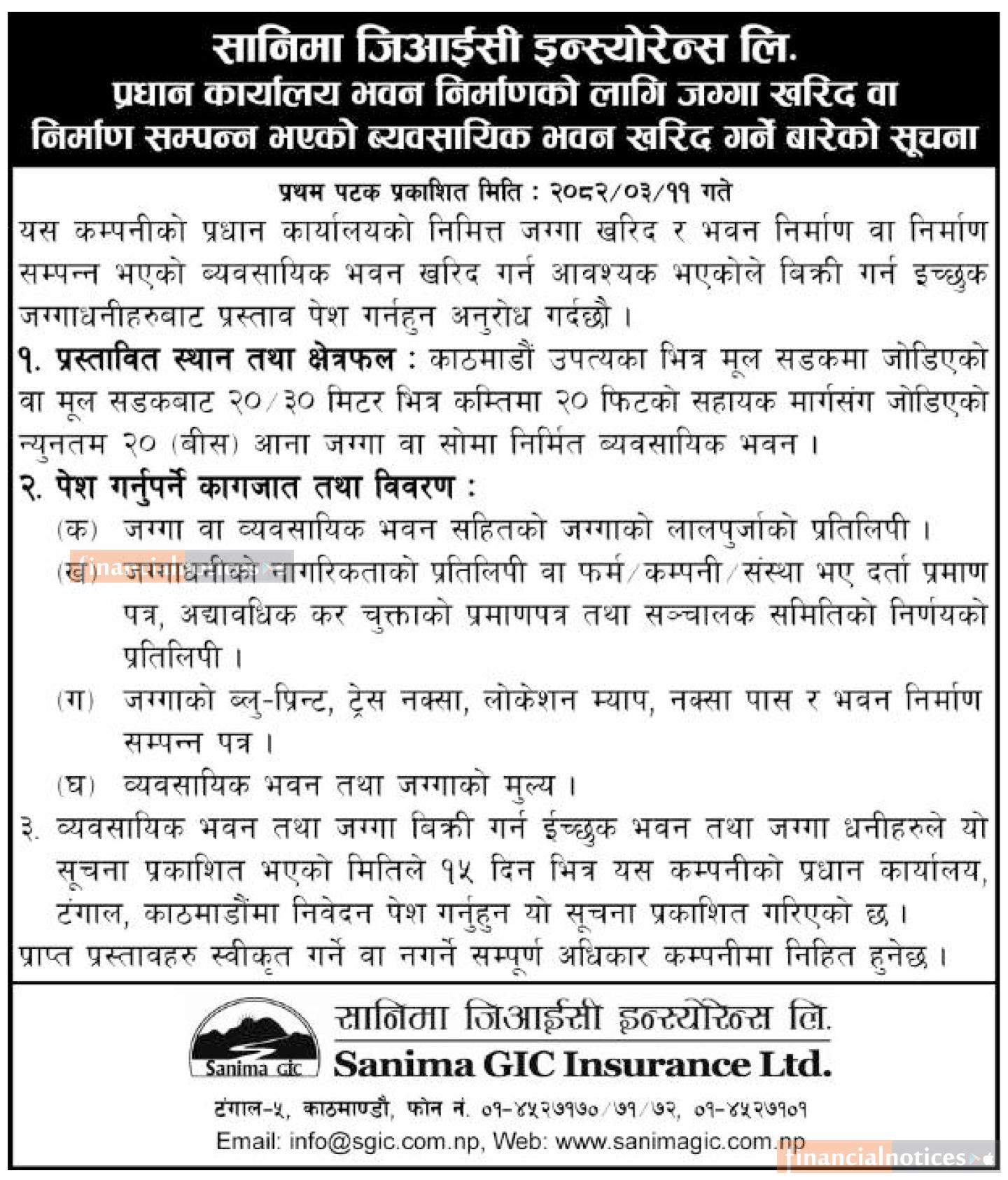 व्यवसायीक भवन खरिद गर्ने सम्बन्धी सूचना