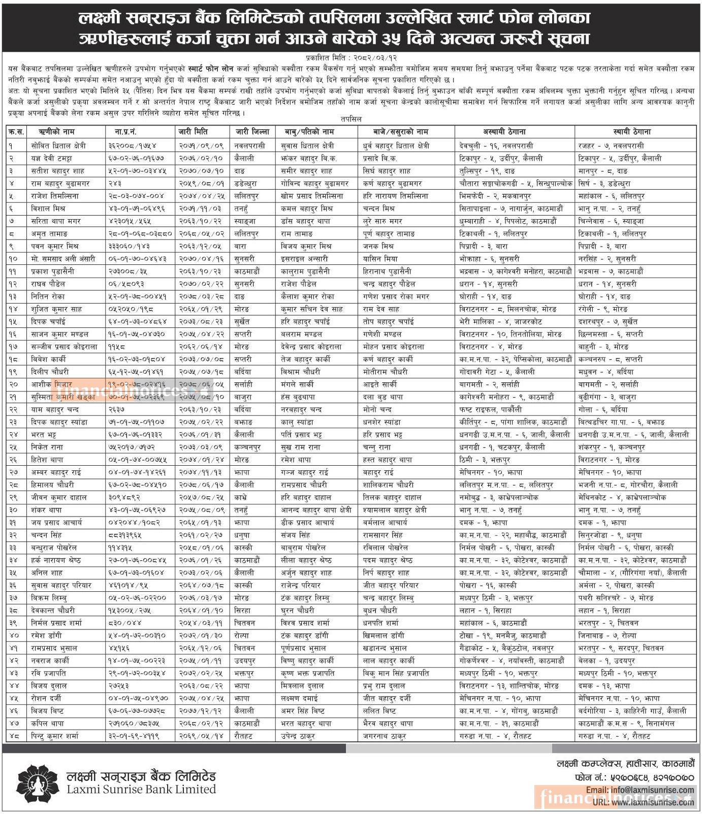 Published by Laxmi Sunrise Bank Limited on 2082-3-12