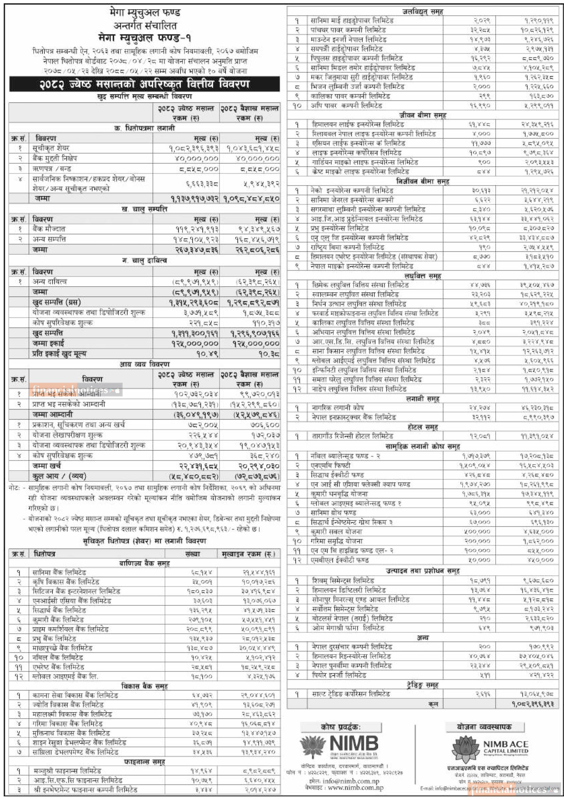 NIMB Ace Capital Limited has published "Mega Mutual Fund-1" NAV till Jestha, 2082